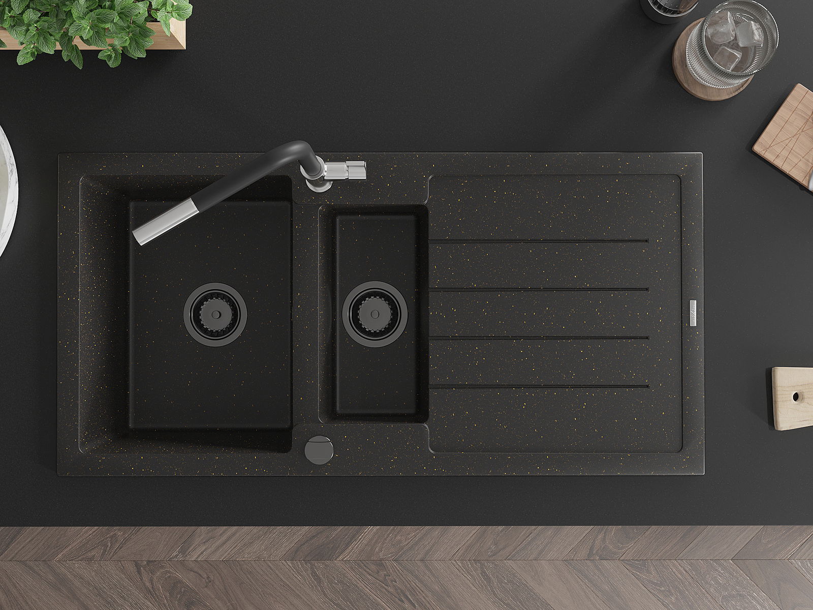 Mexen Andres νεροχύτης γρανίτης 1,5-θάλαμος με στραγγιστήρα και μπαταρία