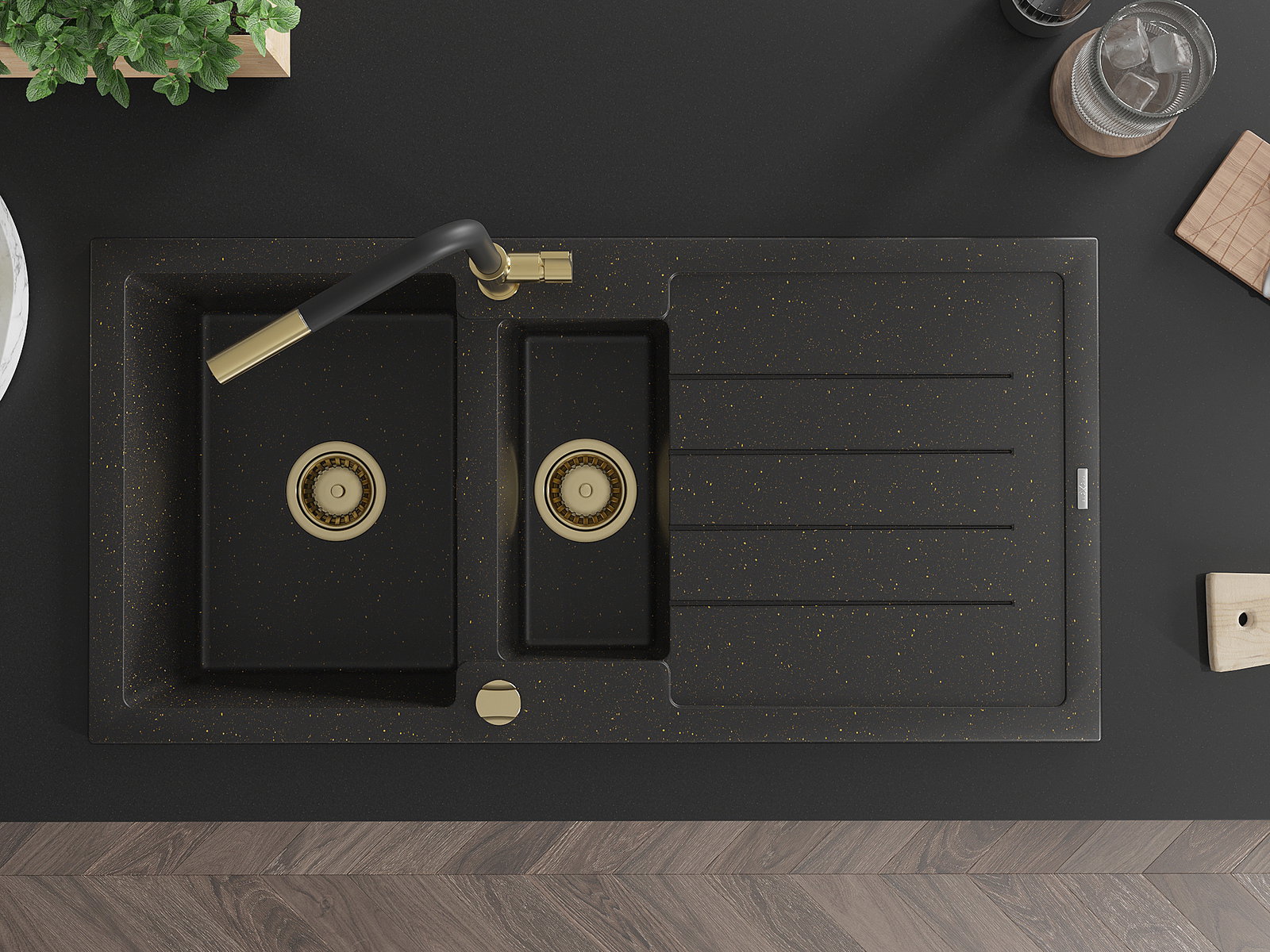 Mexen Andres νεροχύτης γρανίτη 1,5 θαλάμου με αποστράγγιση και μπαταρία