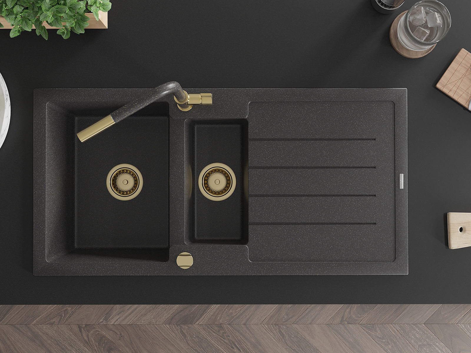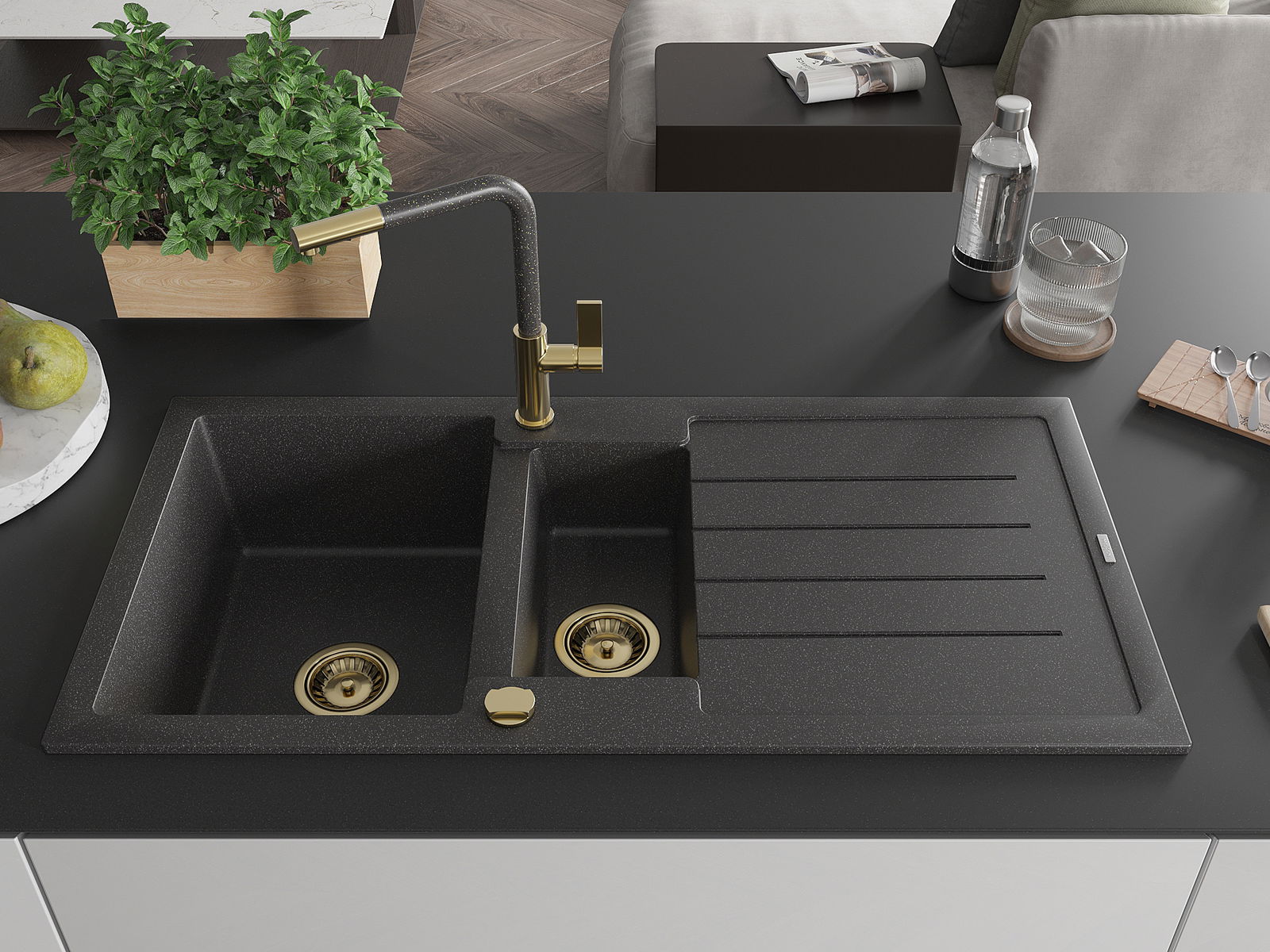 Mexen Andres νεροχύτης από γρανίτη 1,5 θαλάμων με αποστράγγιση και μπαταρία
