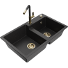 Mexen Tomas νεροχύτης γρανίτης διπλού θαλάμου με μπαταρία κουζίνας Flora,