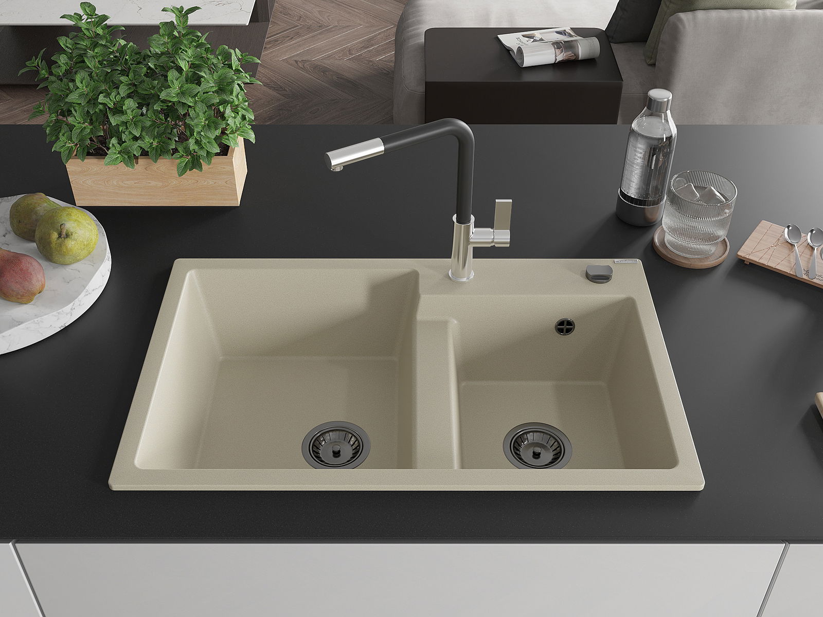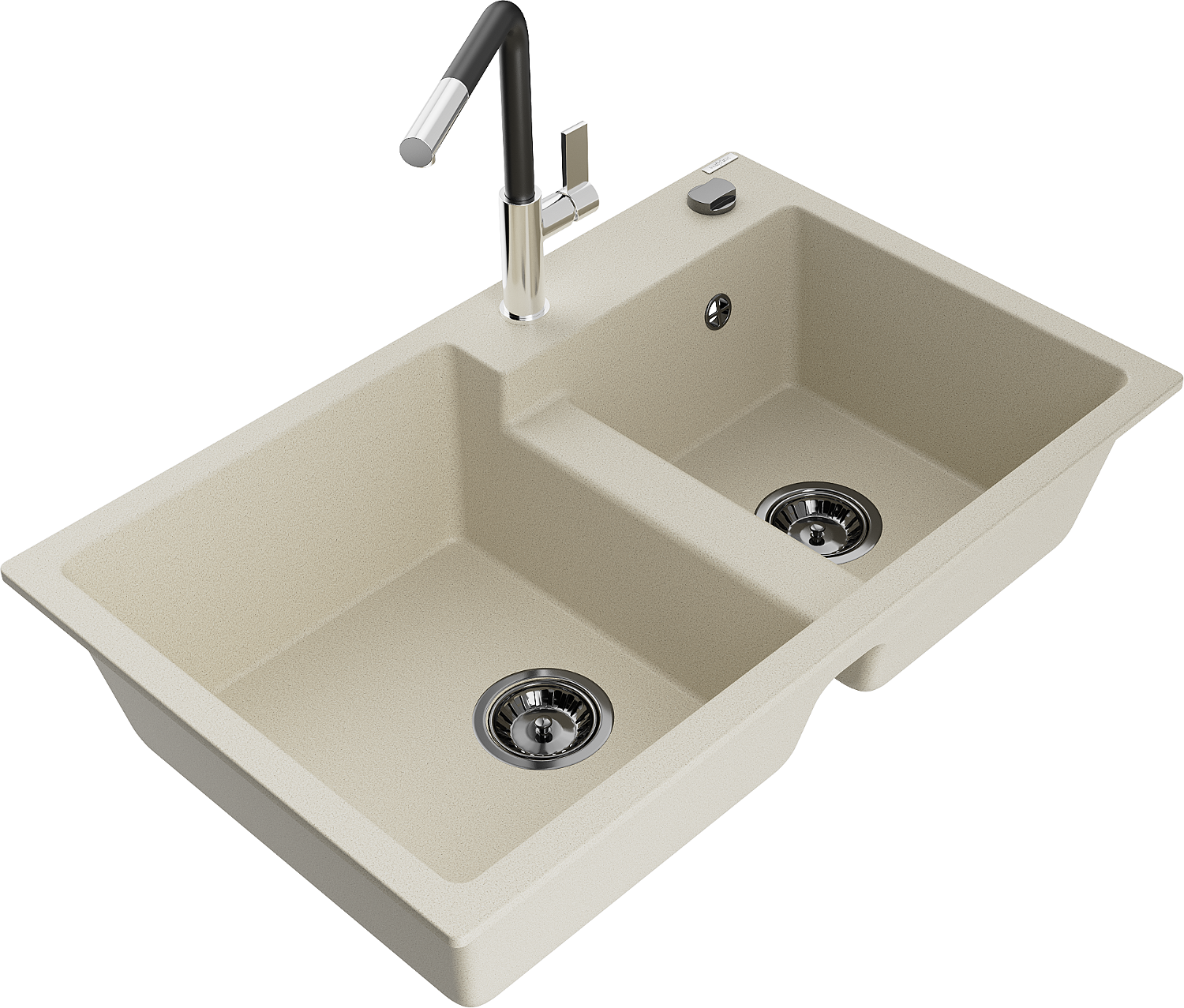 Mexen Tomas νεροχύτης γρανίτης 2-θαλάμων με μπαταρία κουζίνας Flora, μπεζ