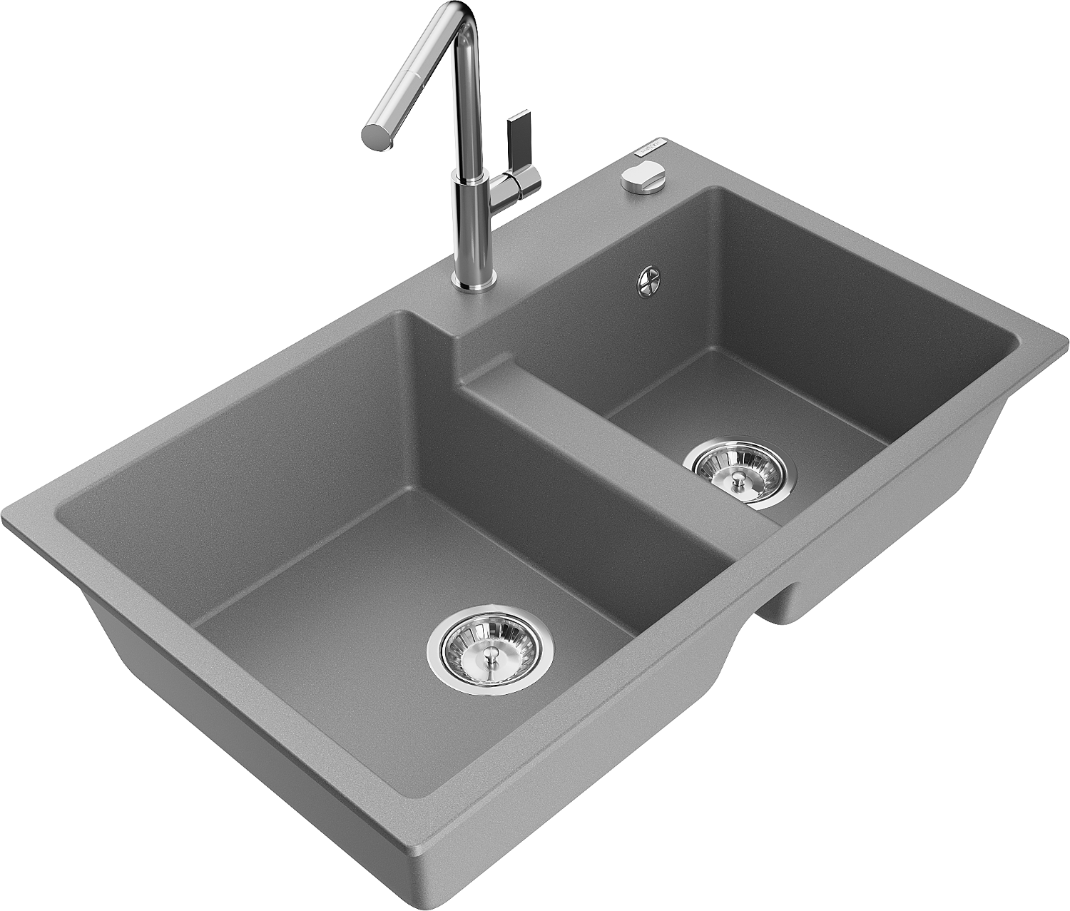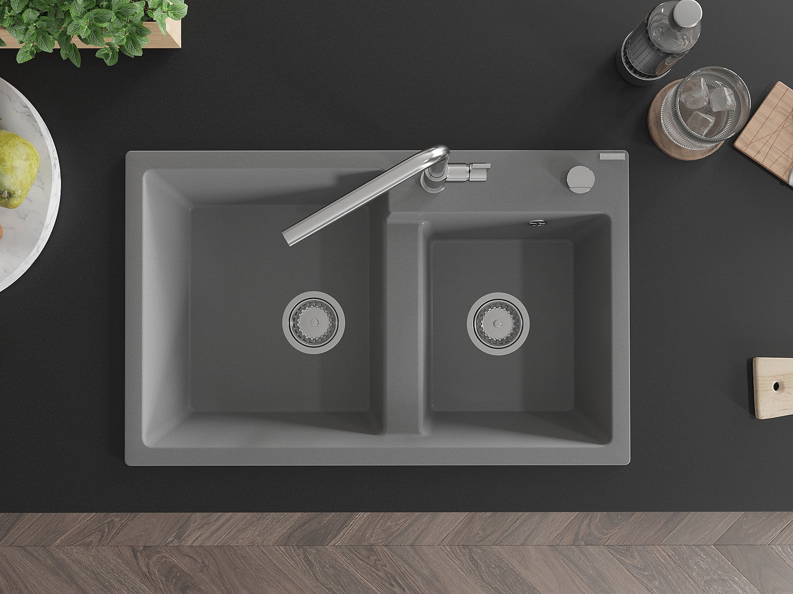 Mexen Tomas γκρανιτένιος νεροχύτης 2 θαλάμων με μπαταρία κουζίνας Flora, γκρι