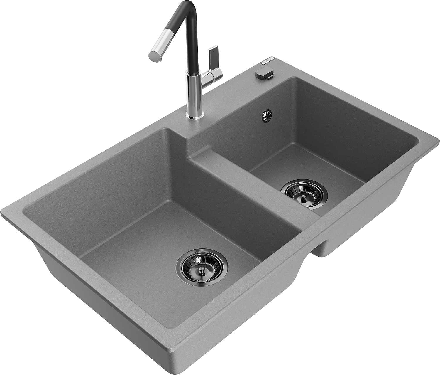 Mexen Tomas νεροχύτης γρανίτης 2-θαλάμων με μπαταρία κουζίνας Flora, γκρι