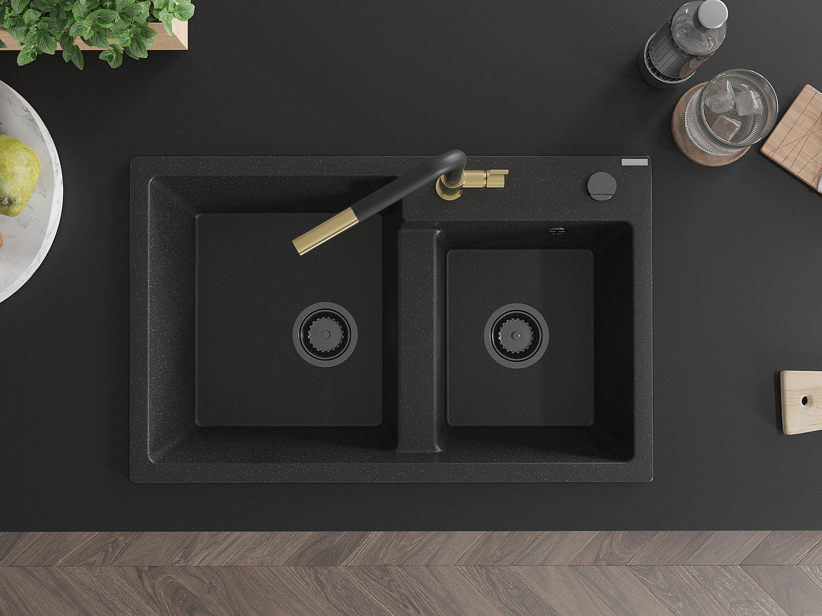Mexen Tomas Νεροχύτης γρανίτης με 2 θαλάμους με μπαταρία κουζίνας Flora,