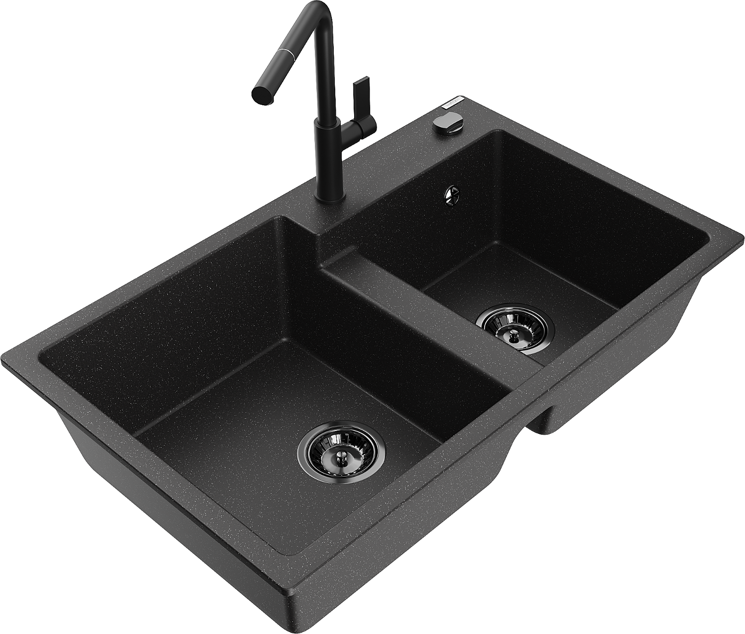 Mexen Tomas νεροχύτης γρανίτης 2-θαλάμων με μπαταρία κουζίνας Flora,