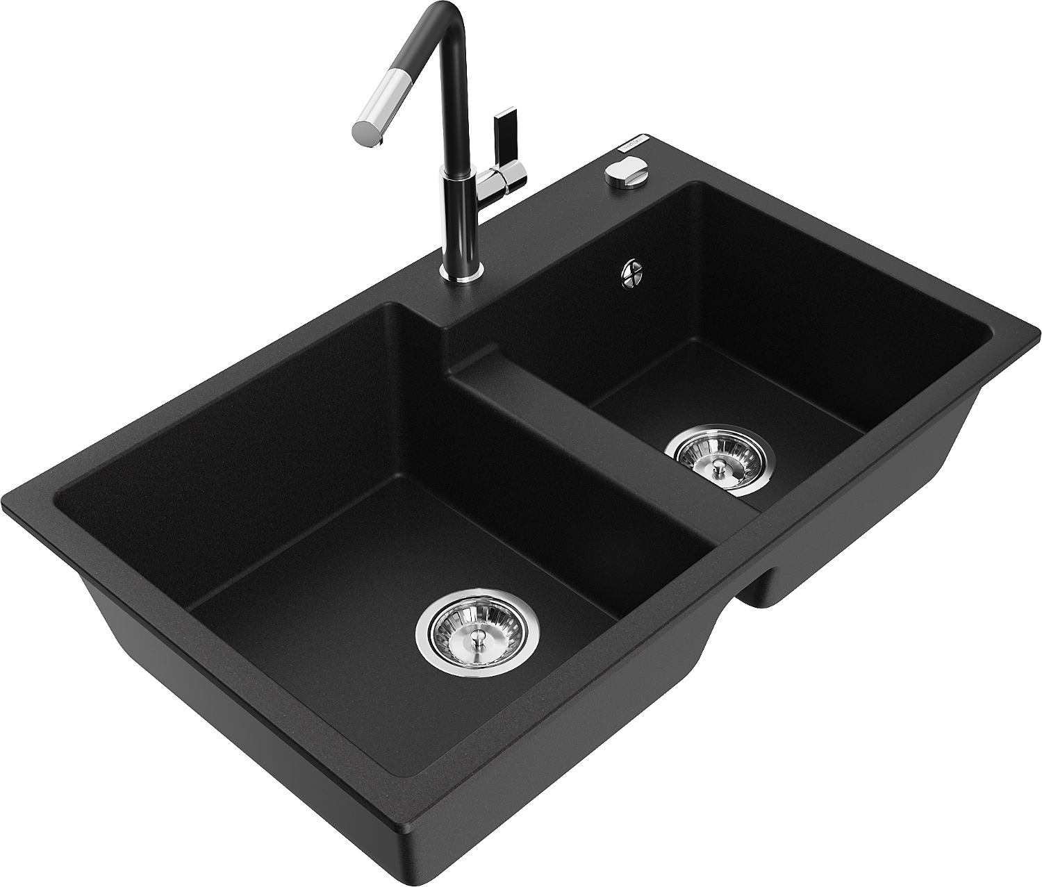 Mexen Tomas νεροχύτης γρανίτης 2-κάδων με μπαταρία κουζίνας Flora, μαύρος