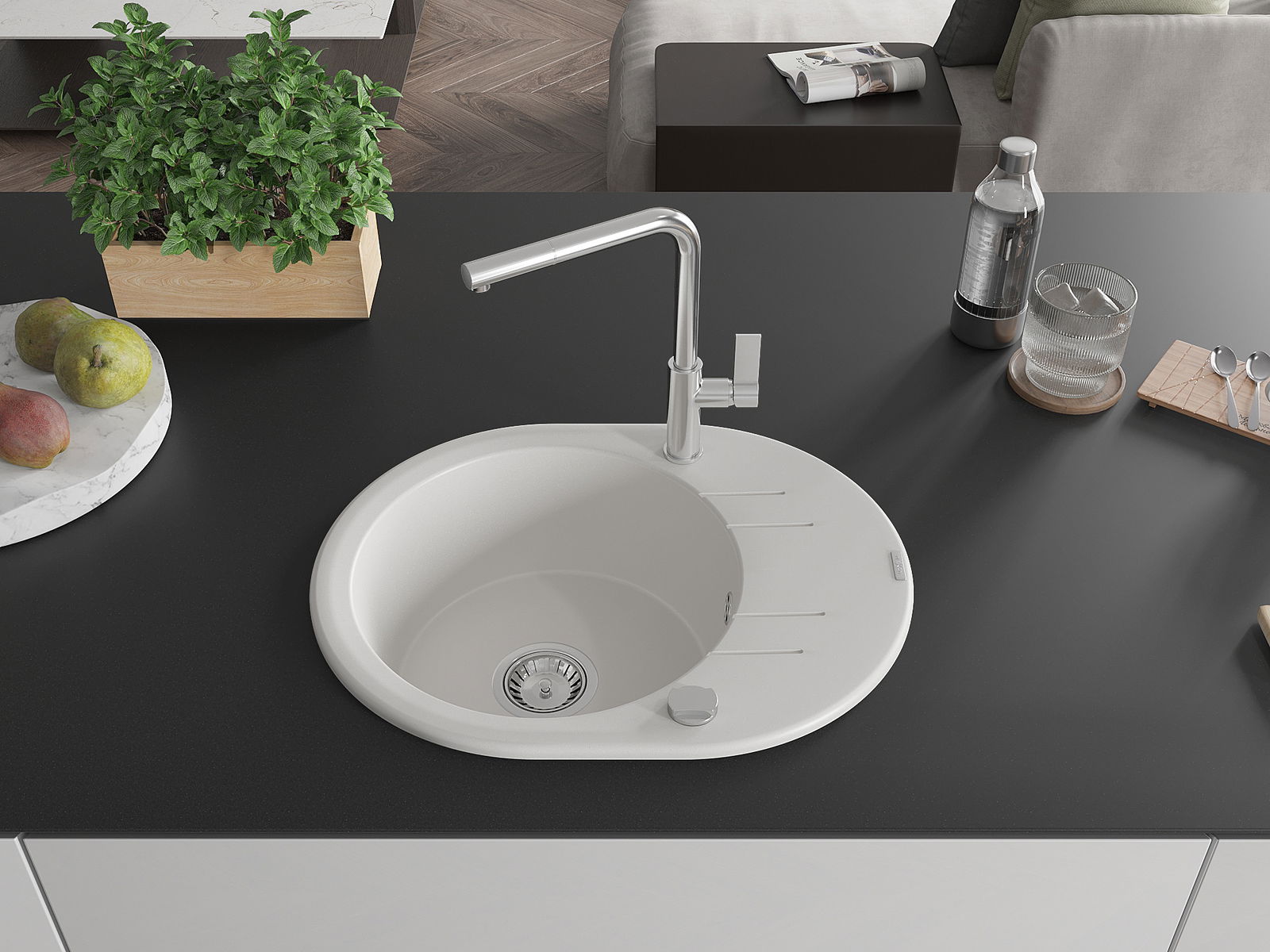 Ο νεροχύτης κατασκευάστηκε από υψηλής ποιότητας γρανίτη. Αποτελεί μια κομψή, και κυρίως πρακτική προσθήκη για κάθε κουζίνα, ανεξάρτητα από το στυλ της. Η υψηλή ποιότητα και η αντοχή του γρανίτη εξασφαλίζουν πολυετή χρήση.