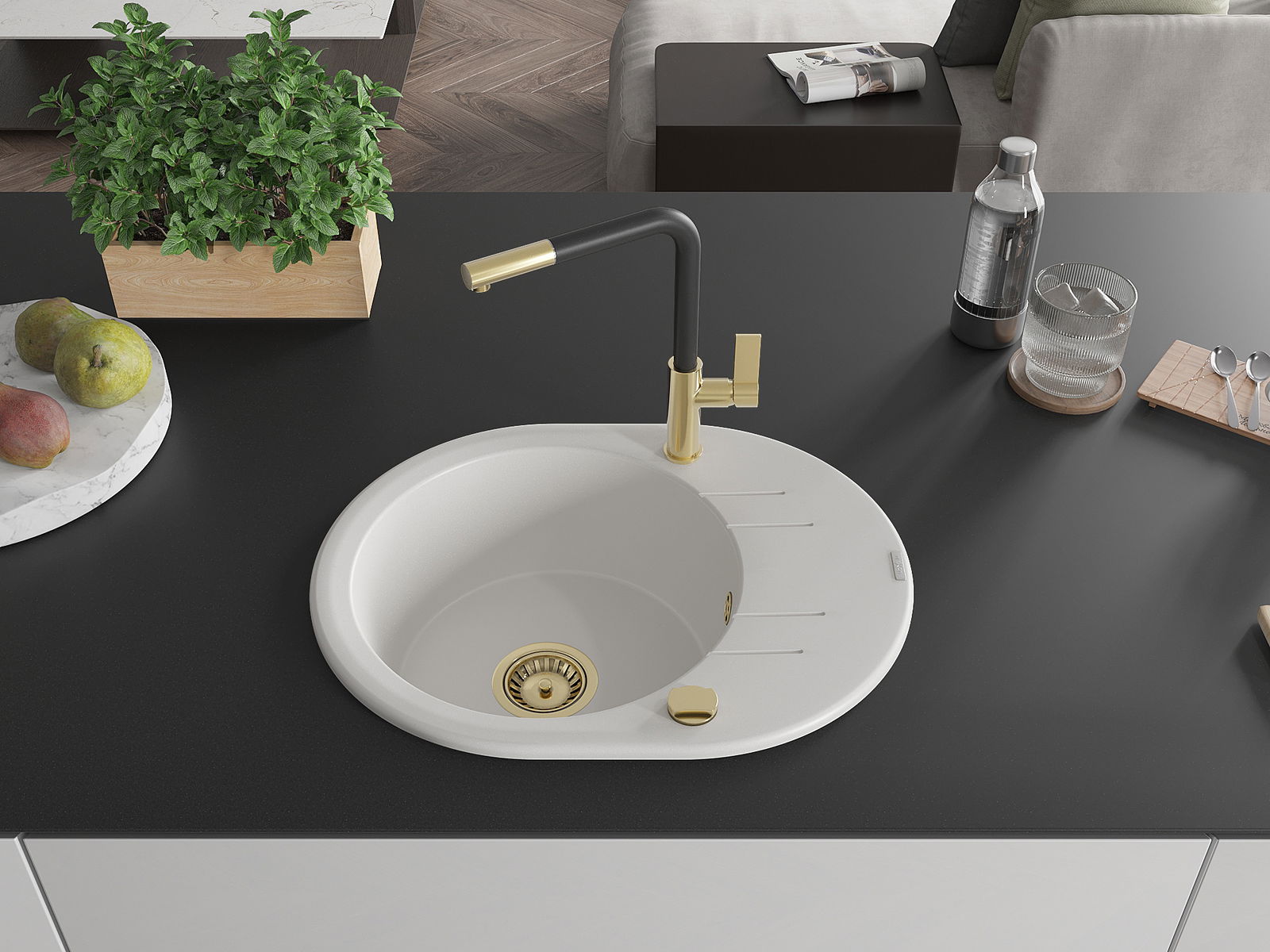 Ο νεροχύτης κατασκευάστηκε από υψηλής ποιότητας γρανίτη. Αποτελεί μια κομψή, και κυρίως πρακτική προσθήκη για κάθε κουζίνα, ανεξάρτητα από το στυλ της. Η υψηλή ποιότητα και η αντοχή του γρανίτη εξασφαλίζουν πολυετή χρήση.