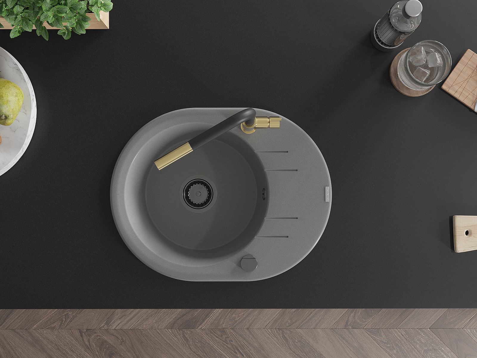 Mexen Kevin νεροχύτης γρανίτης 1-διαμερισματικός με αποστραγγιστικό και