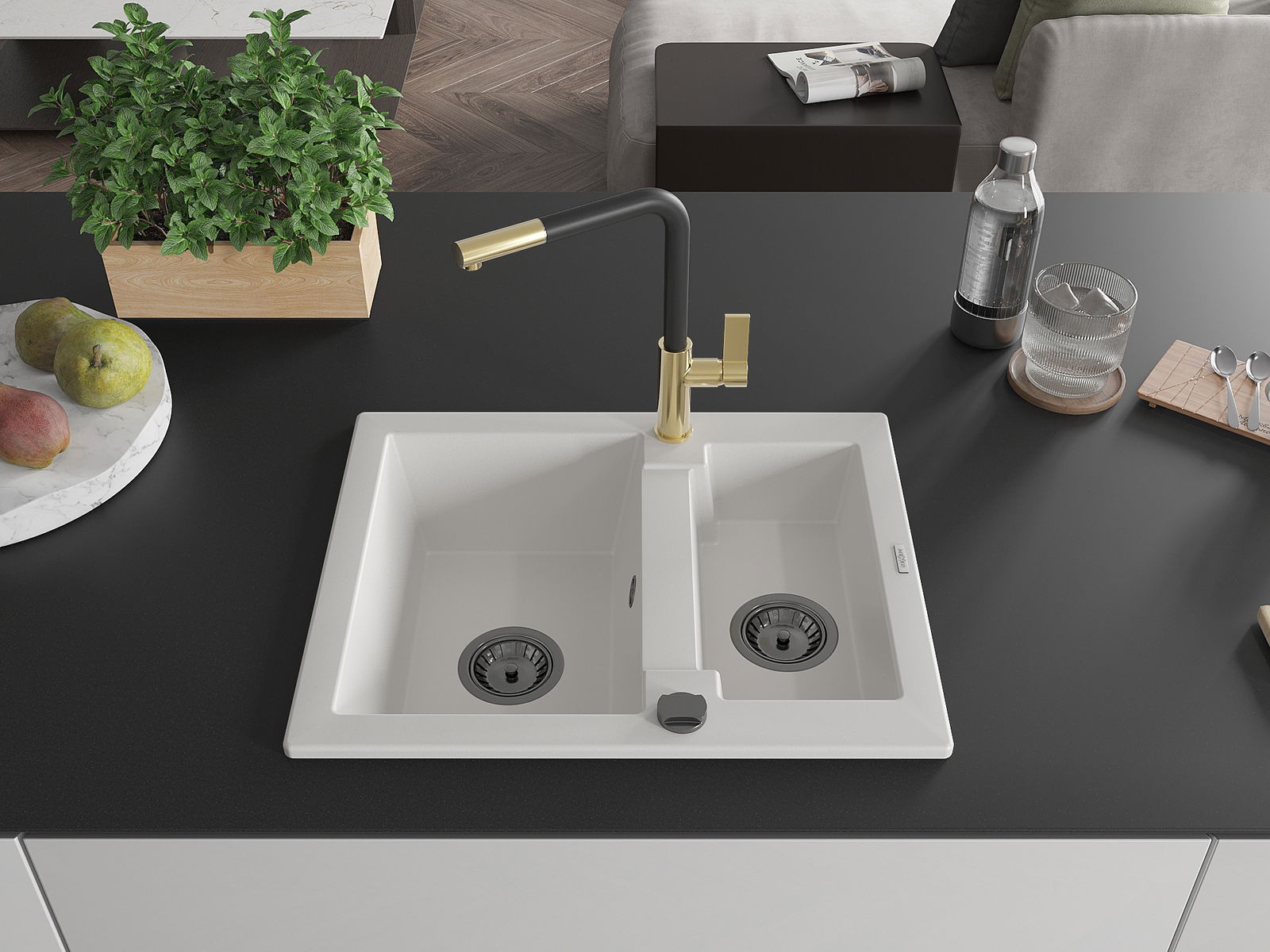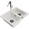 Mexen Carlos νεροχύτης γρανίτης 1,5 θαλάμης με μπαταρία κουζίνας Flora, λευκός