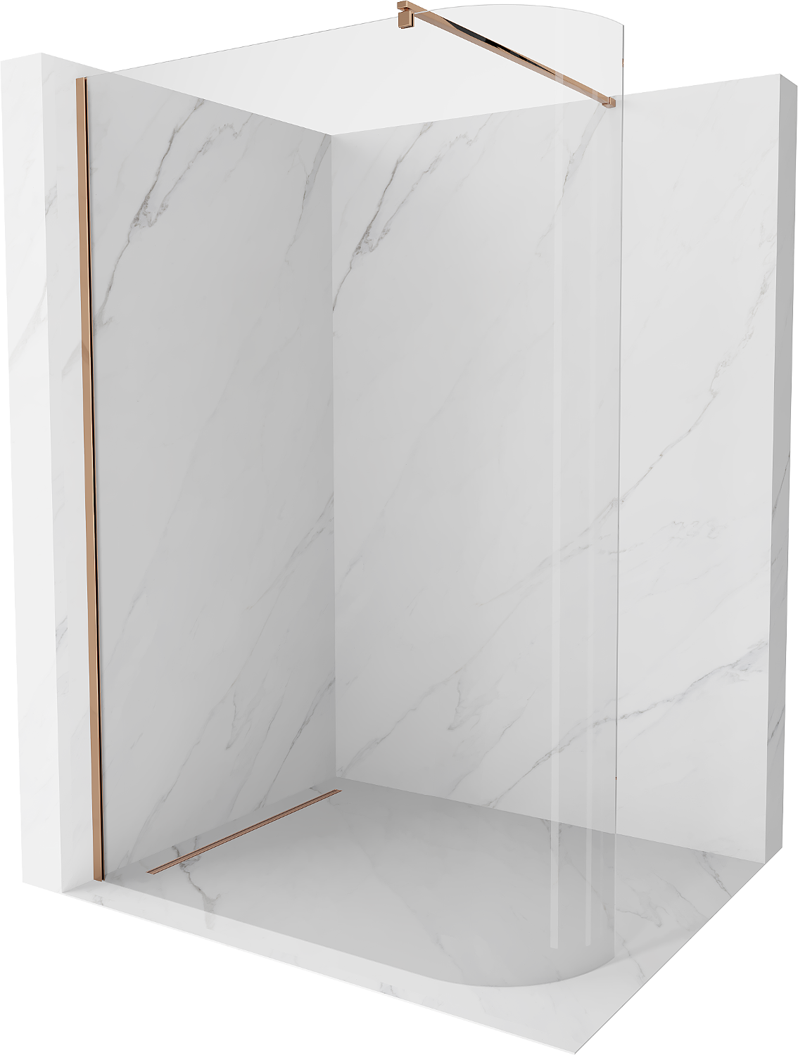 Mexen Kioto-R καμπυλωτό πάνελ ντους Walk-in 80 x 200 cm, διαφανές 8 mm, ροζ χρυσό