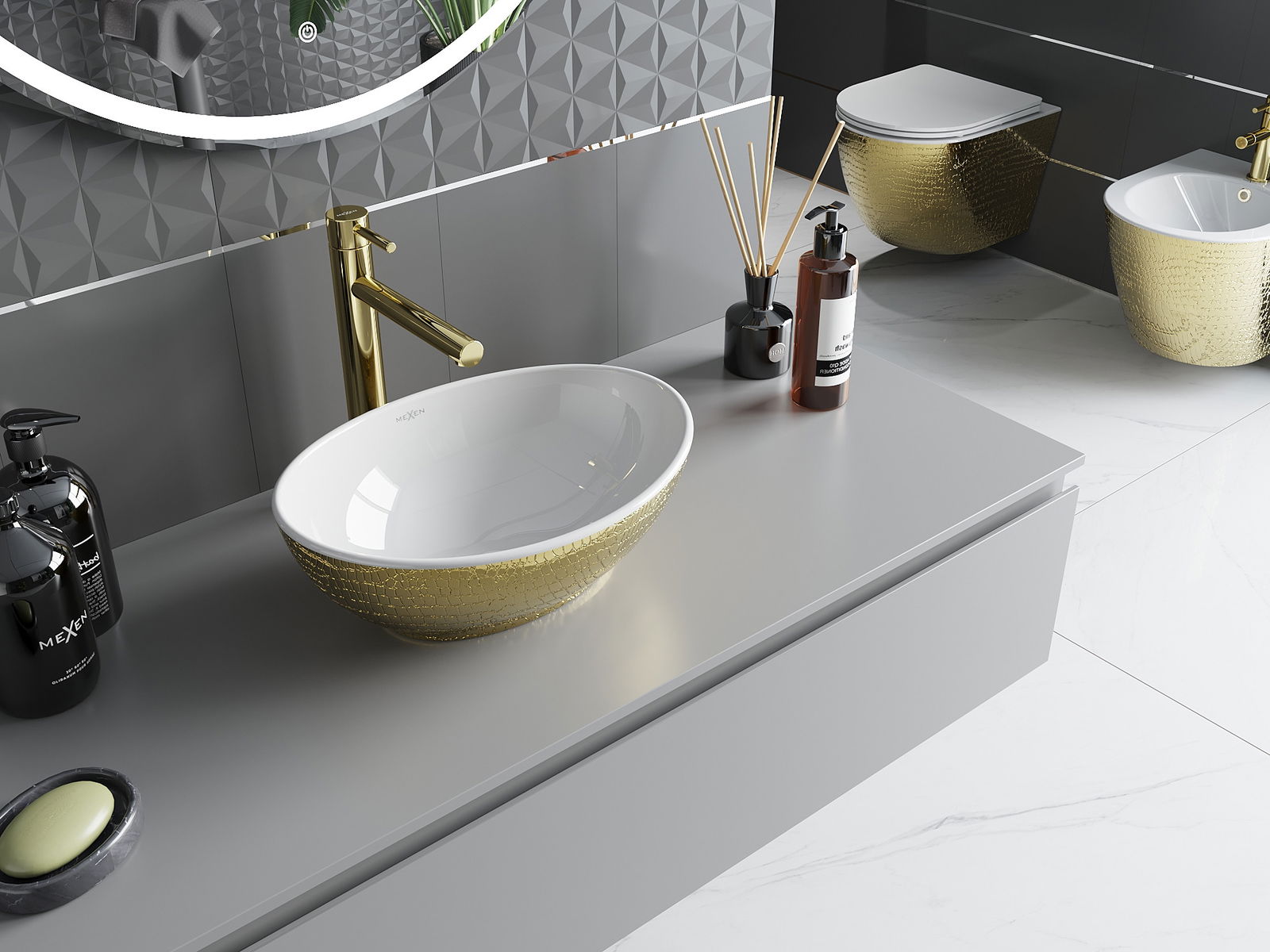 Mexen Elza νιπτήρας επιτραπέζιος 40 x 33 cm, λευκός/χρυσό μοτίβο φολίδας - 21014008