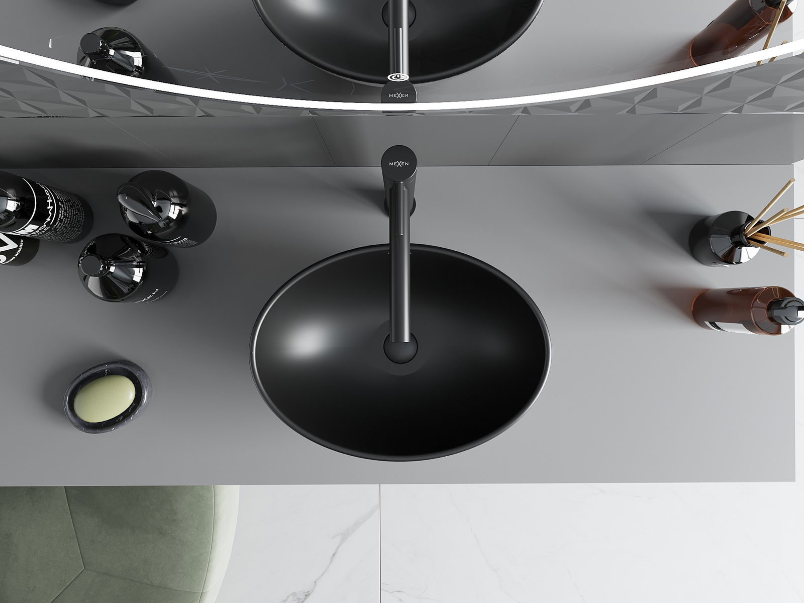 Mexen Elza νιπτήρας επιτραπέζιος 40 x 33 cm, μαύρος ματ/ασημί σχέδιο γραμμές
