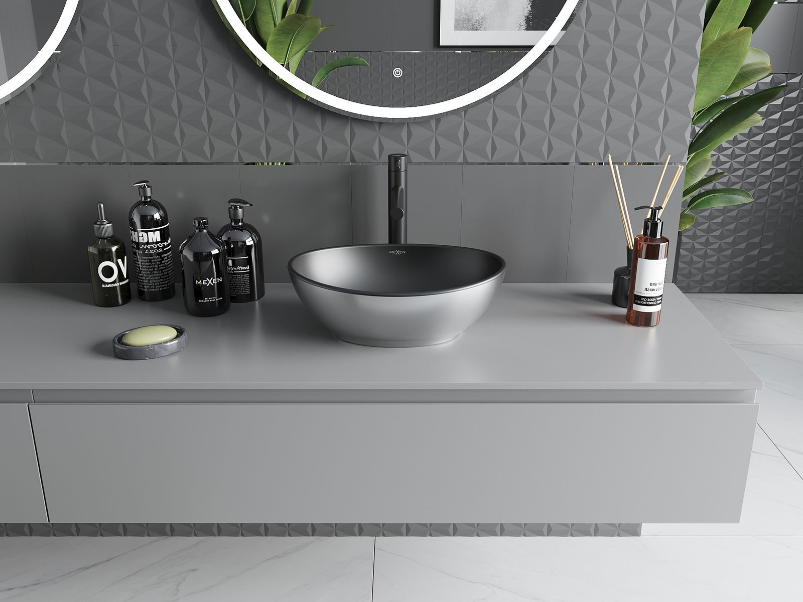 Mexen Elza νιπτήρας επιτραπέζιος 40 x 33 cm, μαύρος ματ/ασημί - 21014024