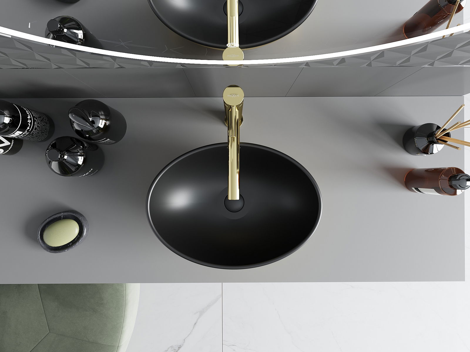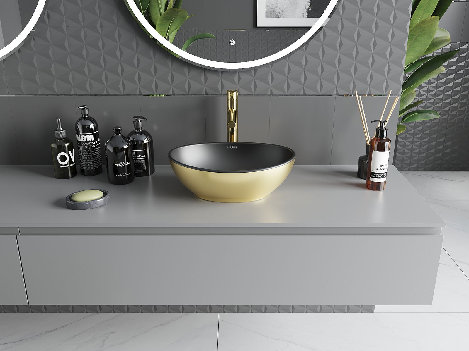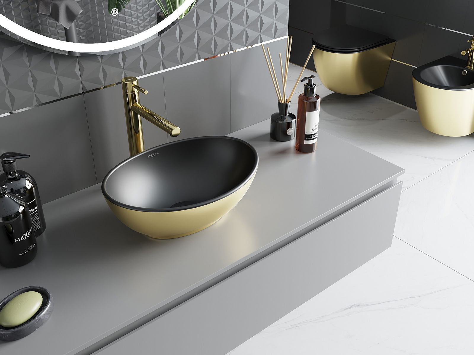 Mexen Elza νιπτήρας επιτραπέζιος 40 x 33 cm, μαύρο ματ/χρυσό - 21014026