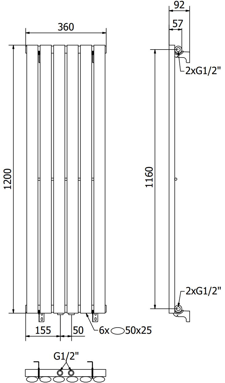 Mexen Oregon διακοσμητικό καλοριφέρ 1200 x 360 mm, 417 W, μαύρο - W202-1200-350-00-70