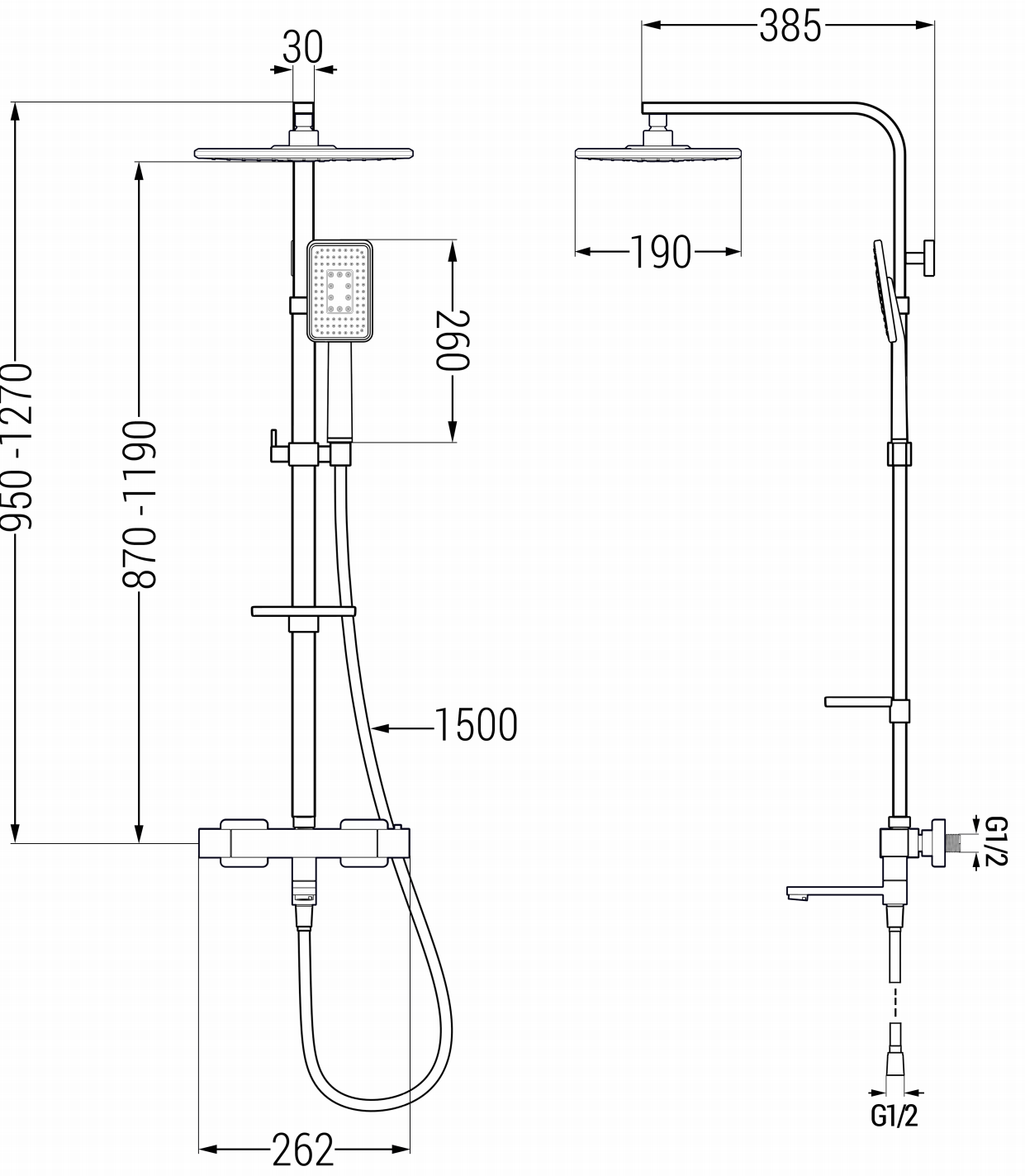 Μέγεθος κεφαλής ντους: 300x190 mm