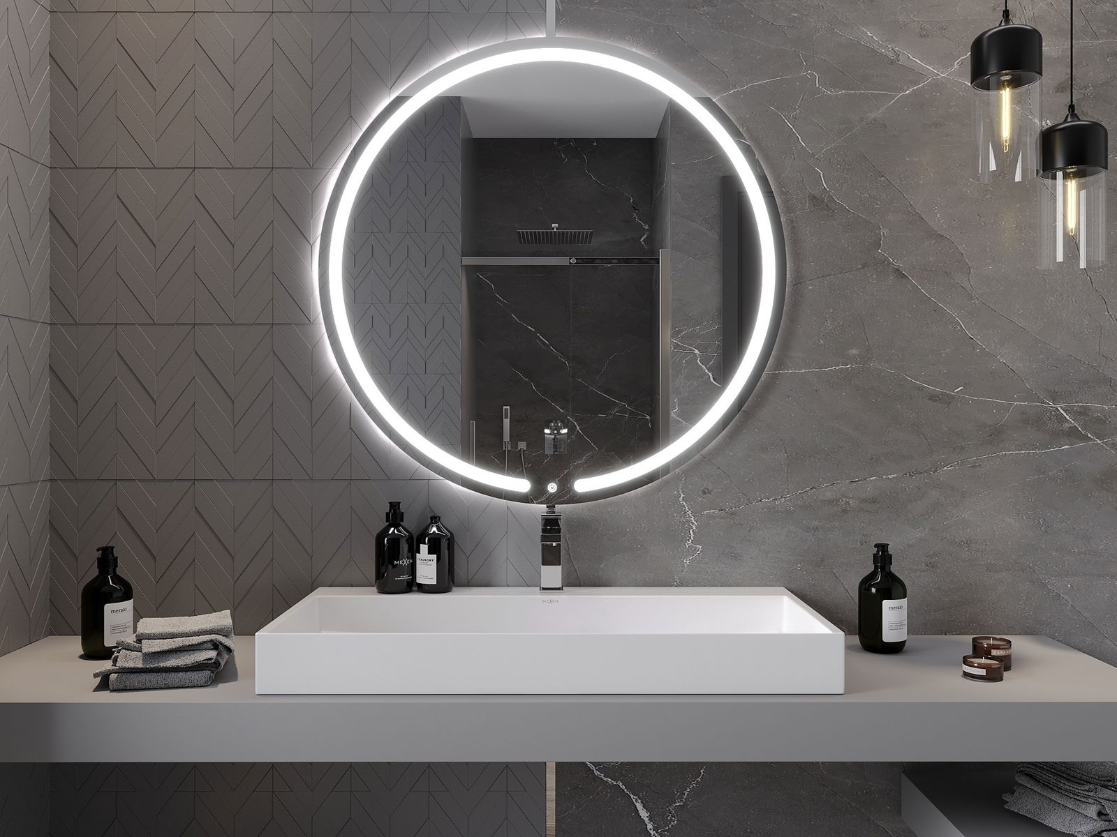 Ο φωτισμός LED στον καθρέφτη είναι ένα πρακτικό στοιχείο που διευκολύνει την καθημερινή φροντίδα με τη δυνατότητα ιδανικού φωτισμού του προσώπου. Ο φωτισμός δίνει στο μπάνιο σύγχρονο φινίρισμα, υπογραμμίζοντας τη κομψή διακόσμησή του.