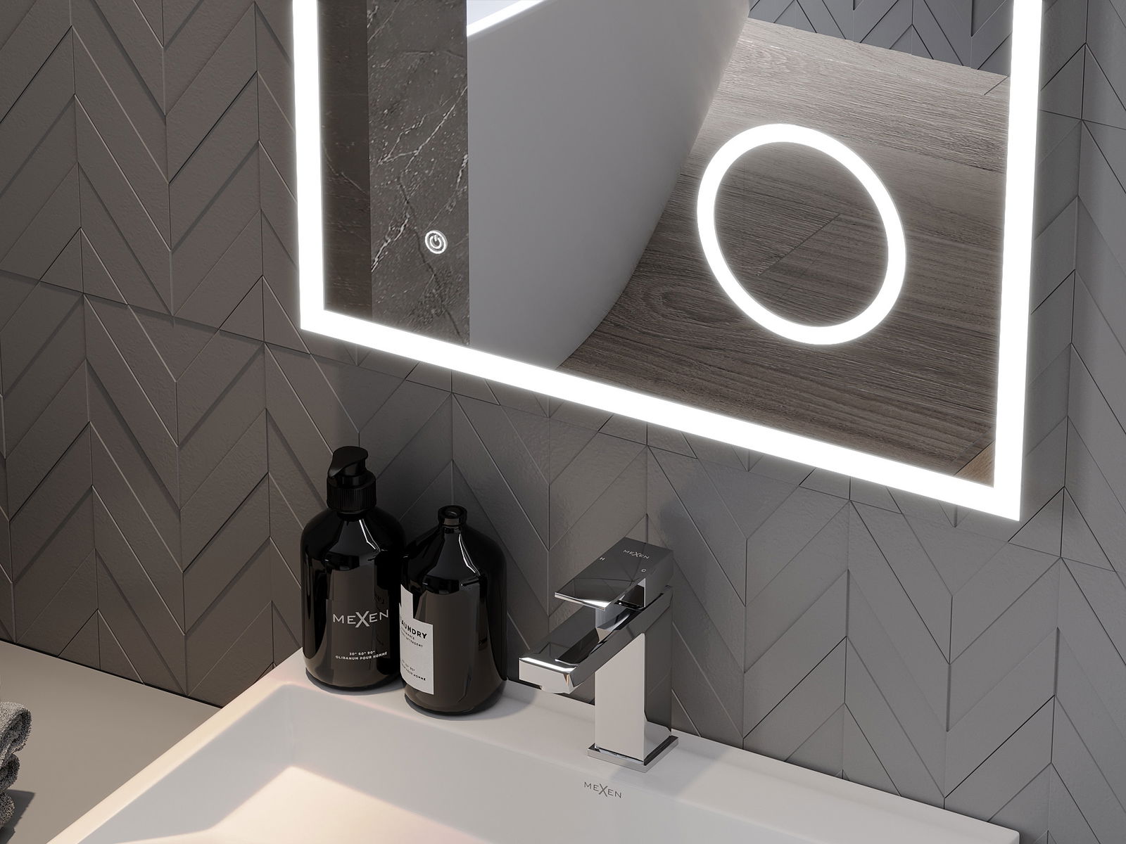 Ο φωτισμός LED στον καθρέφτη είναι ένα πρακτικό στοιχείο που διευκολύνει την καθημερινή φροντίδα με τη δυνατότητα ιδανικού φωτισμού του προσώπου. Ο φωτισμός δίνει στο μπάνιο σύγχρονο φινίρισμα, υπογραμμίζοντας τη κομψή διακόσμησή του.