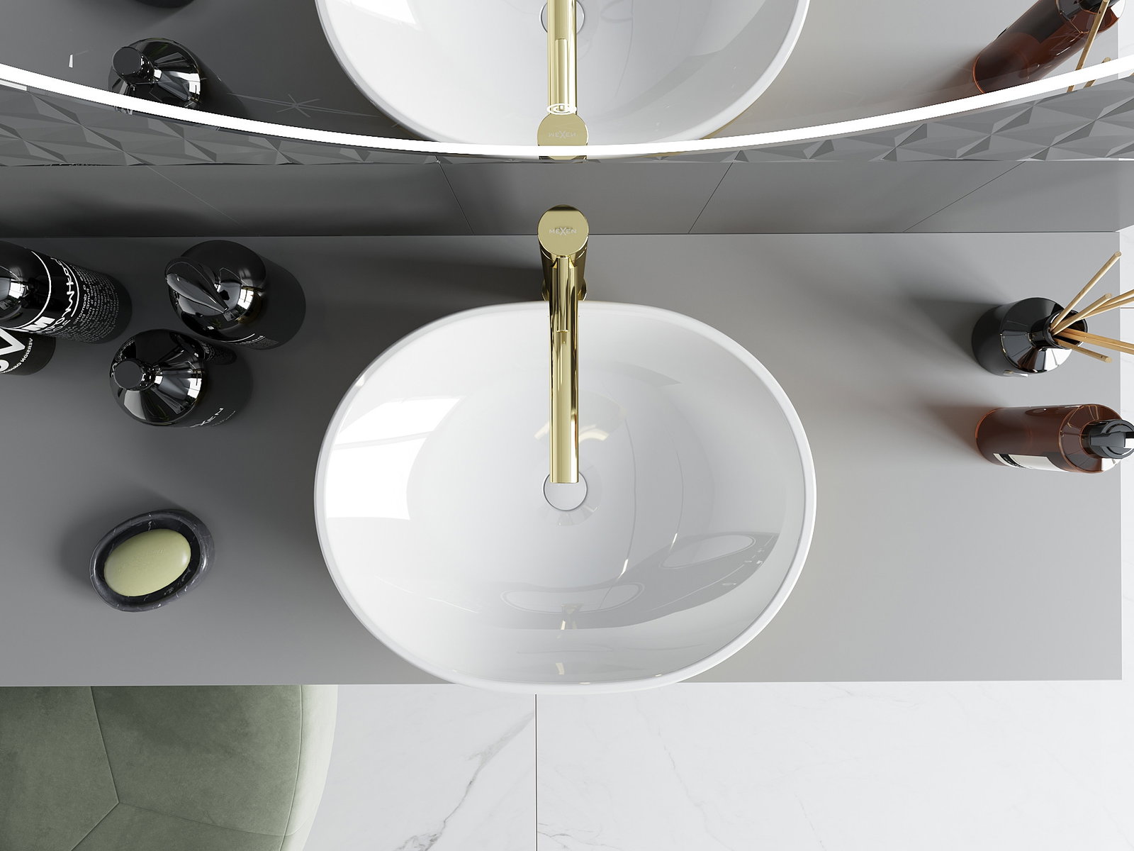 Mexen Viki νιπτήρας επιτραπέζιος 48 x 35 cm, λευκός/χρυσός - 21054806