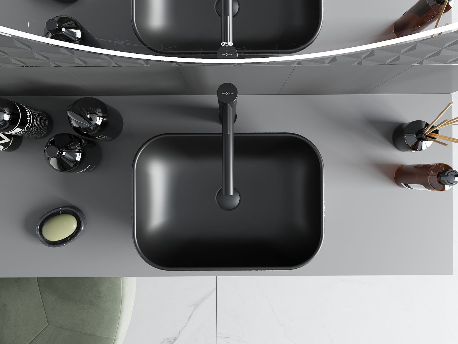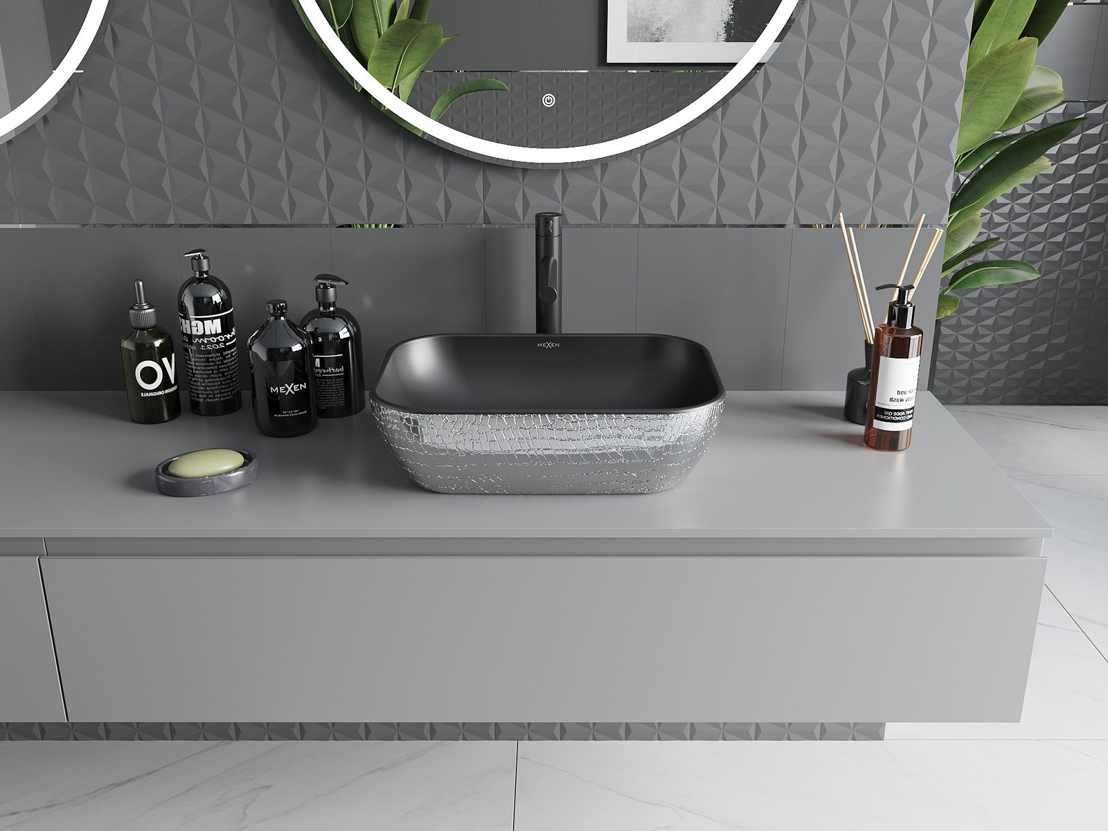 Mexen Rita νιπτήρας πάγκου 45 x 32 cm, μαύρο ματ/ασημένιο σχέδιο φολίδες - 21084572