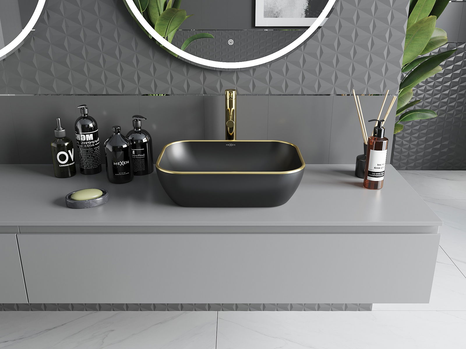 Mexen Rita νιπτήρας επιτραπέζιος 45 x 32 εκ., μαύρος ματ/χρυσό χείλος - 21084575