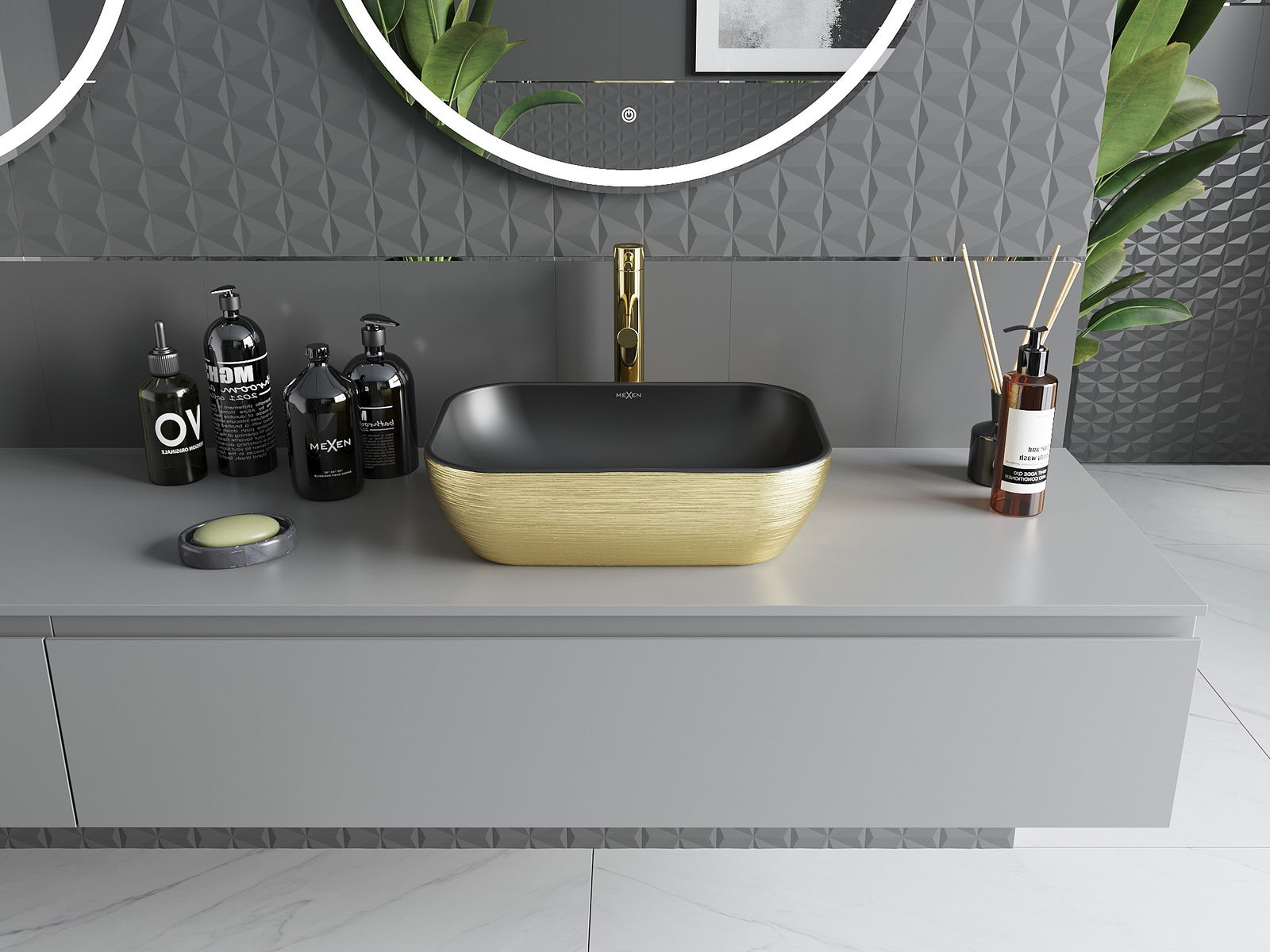 Mexen Rita νιπτήρας πάγκου 45 x 32 εκ, μαύρος ματ/χρυσό σχέδιο γραμμές - 21084577