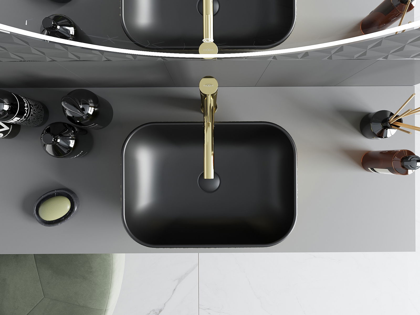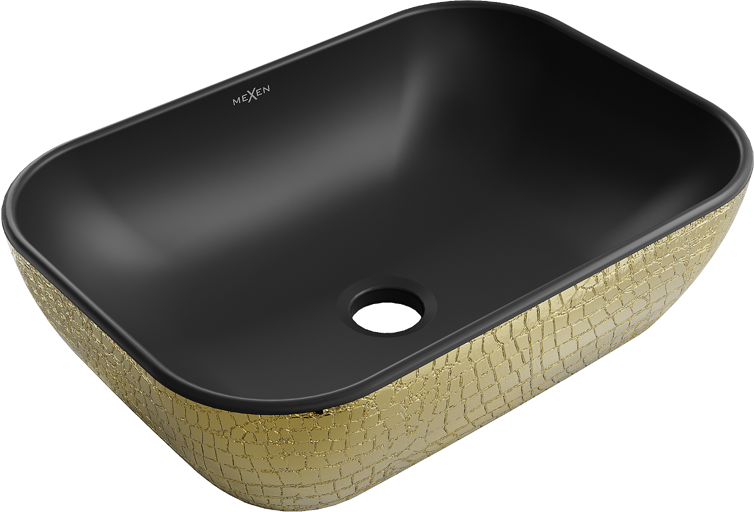 Mexen Rita νιπτήρας πάγκου 45 x 32 cm, μαύρο ματ/χρυσό μοτίβο φολίδας - 21084578