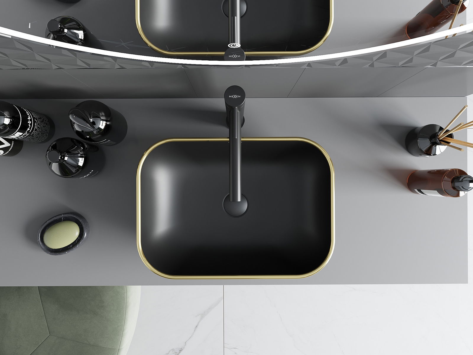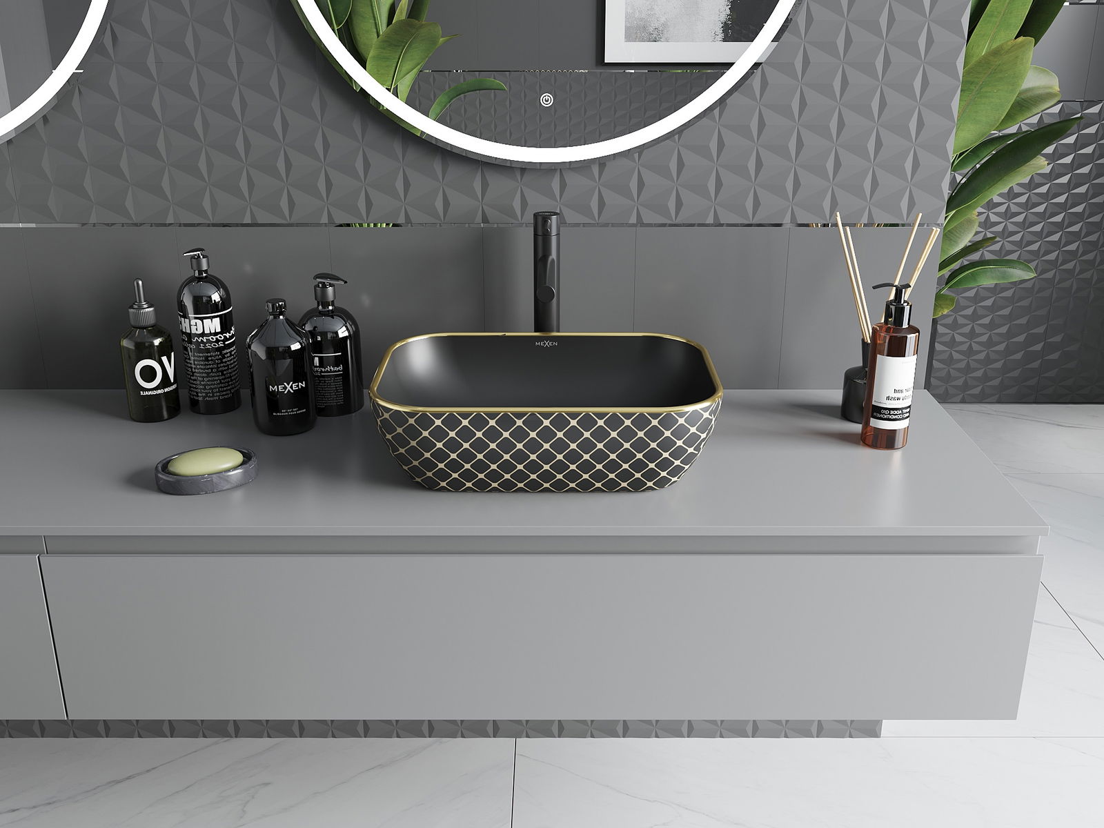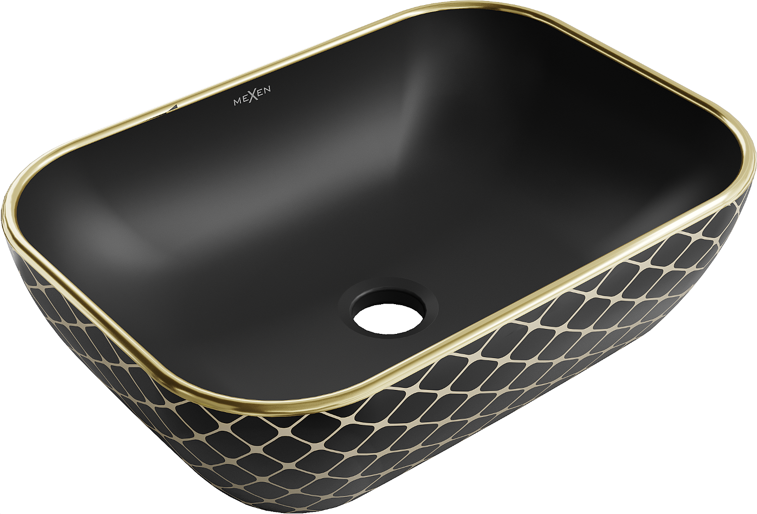 Mexen Rita νιπτήρας επιτραπέζιος 45 x 32 cm, μαύρος ματ/χρυσό μοτίβο καρό - 21084579