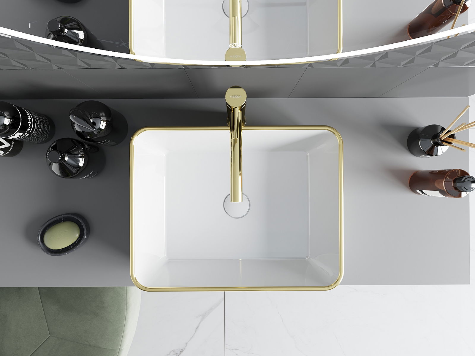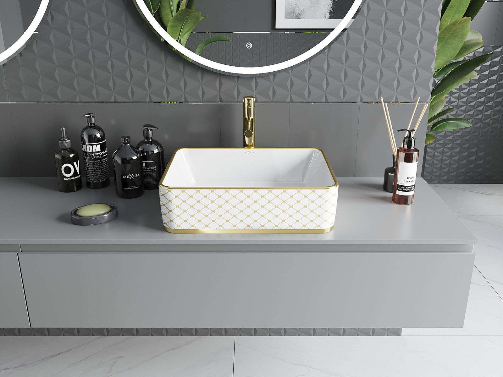 Mexen Catia νιπτήρας πάγκου 48 x 37 cm, λευκός/χρυσός σχέδιο καρό - 21314809