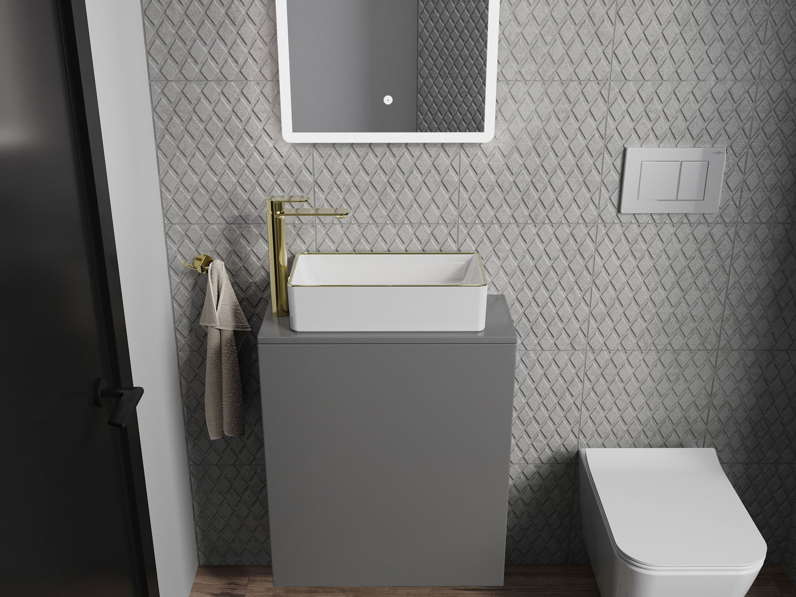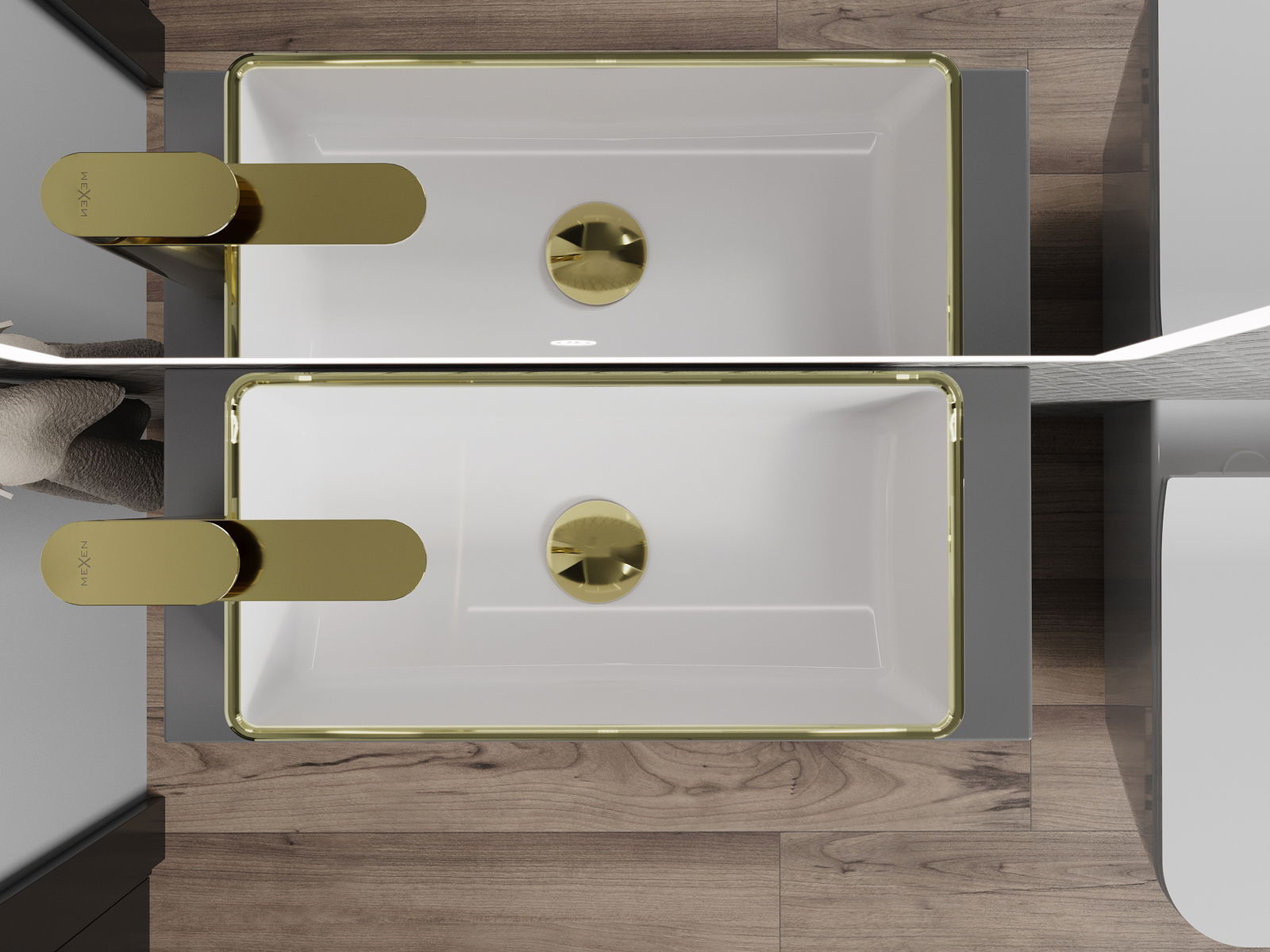 Mexen Nadia επιτραπέζιος νιπτήρας 46 x 23 εκ, λευκός/χρυσό χείλος - 21614605