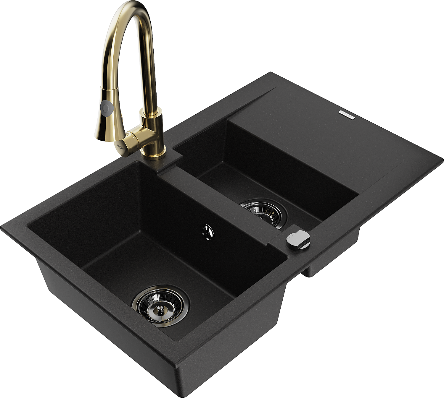 Mexen Gaspar νεροχύτης γρανίτης 1,5-θάλαμος με αποστράγγιση και βρύση