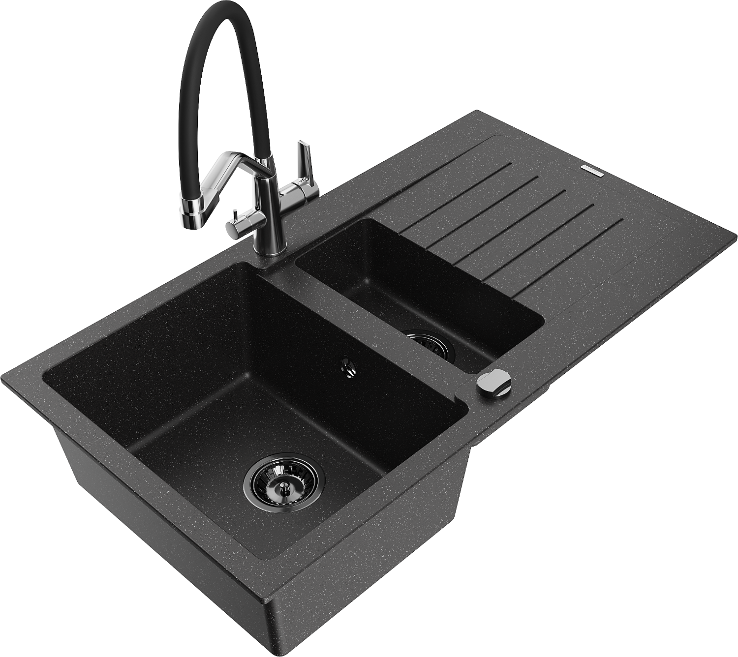 Mexen Matias νεροχύτης γρανίτης 1,5 θαλάμων με αποστραγγιστήρα και μπαταρία