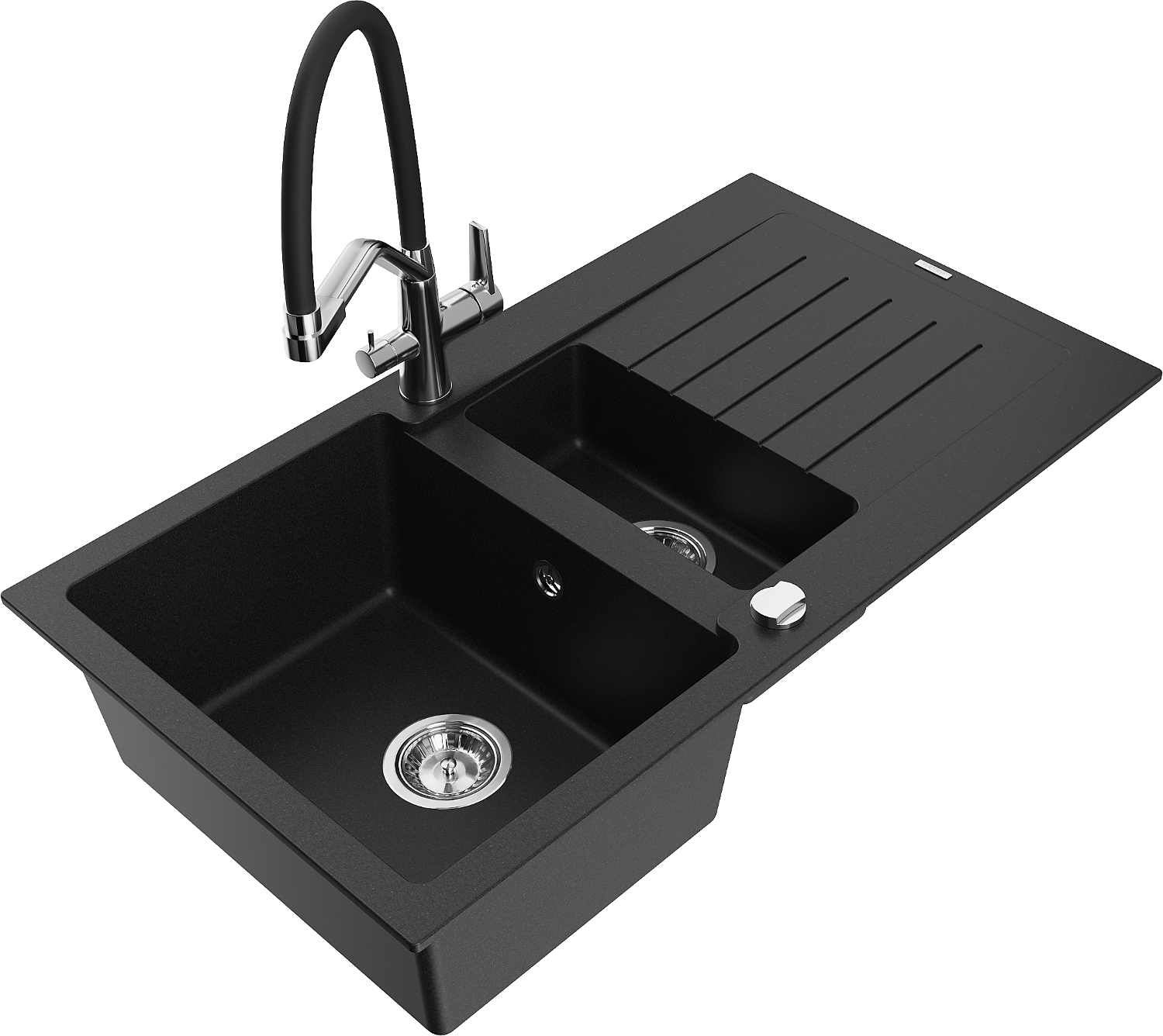 Mexen Matias νεροχύτης γρανίτης 1,5 θαλάμων με αποστράγγιση και βρύση