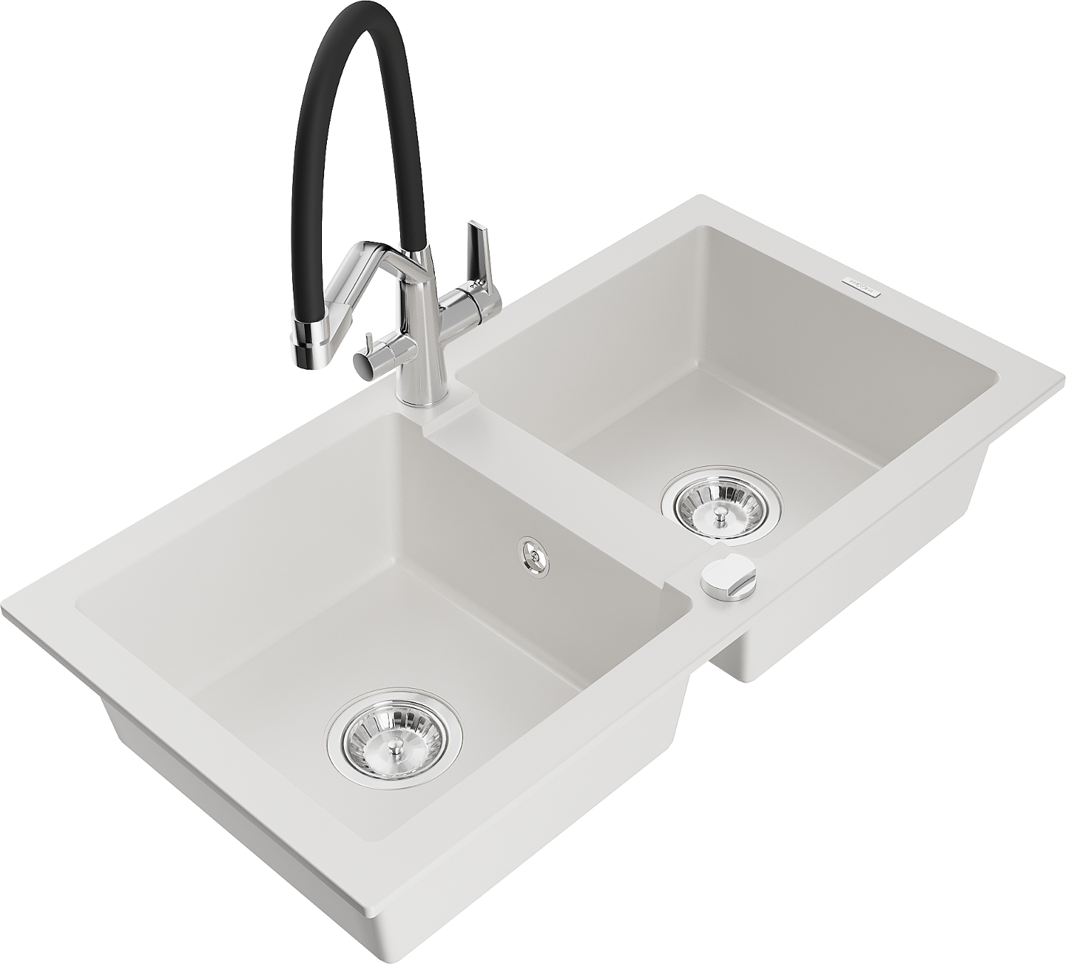 Mexen Mario νεροχύτης γρανίτη 2 θαλάμων με μπαταρία κουζίνας Duo, λευκός