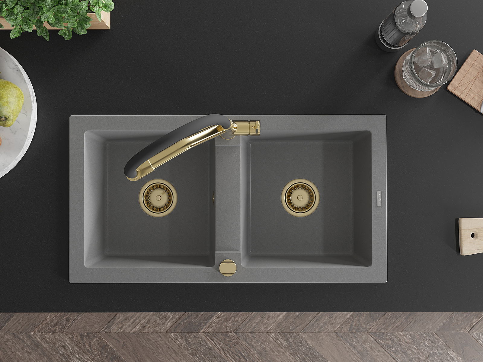 Mexen Mario Νεροχύτης από γρανίτη με 2 θαλάμους και μπαταρία κουζίνας Duo,