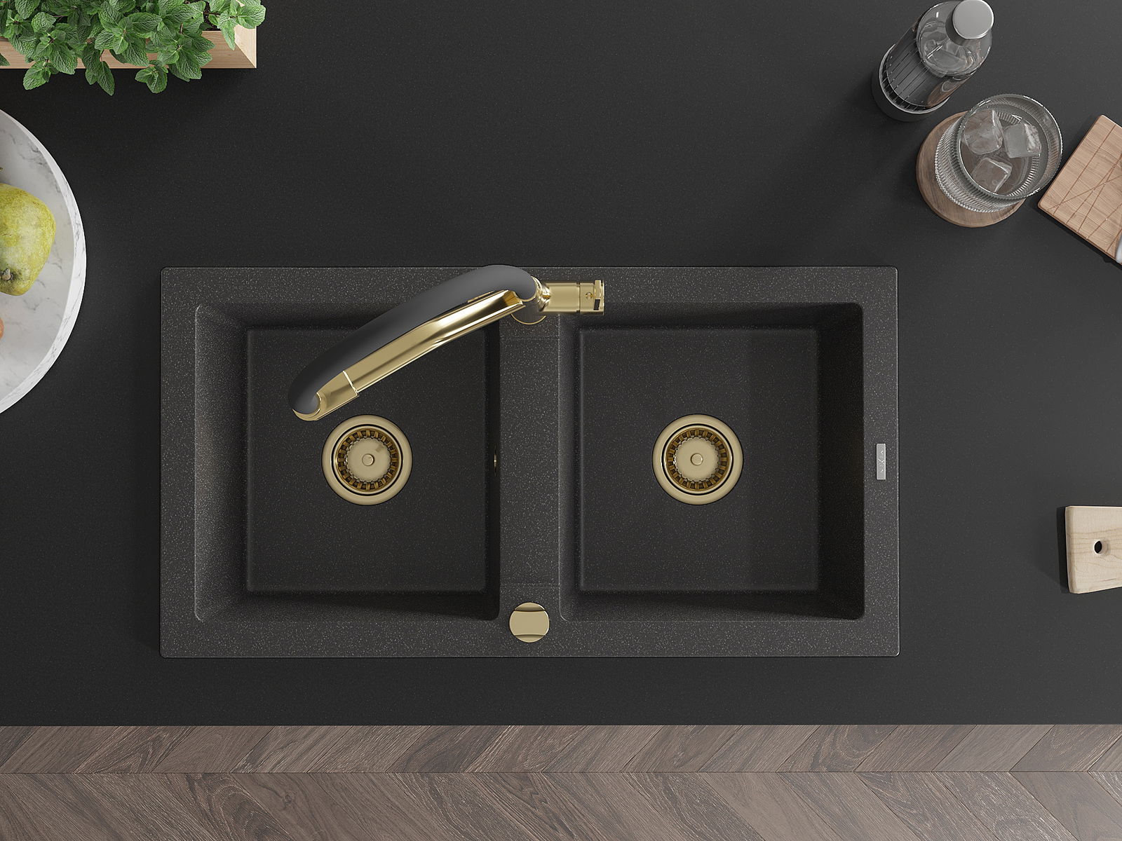 Mexen Mario Νεροχύτης γρανίτης 2 διαμερισμάτων με μπαταρία κουζίνας Duo,