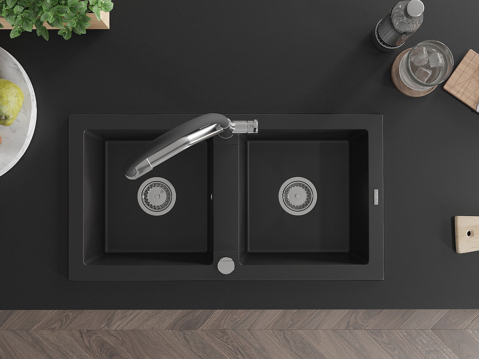 Mexen Mario νεροχύτης γρανίτης 2 θαλάμων με μπαταρία κουζίνας Duo, μαύρος