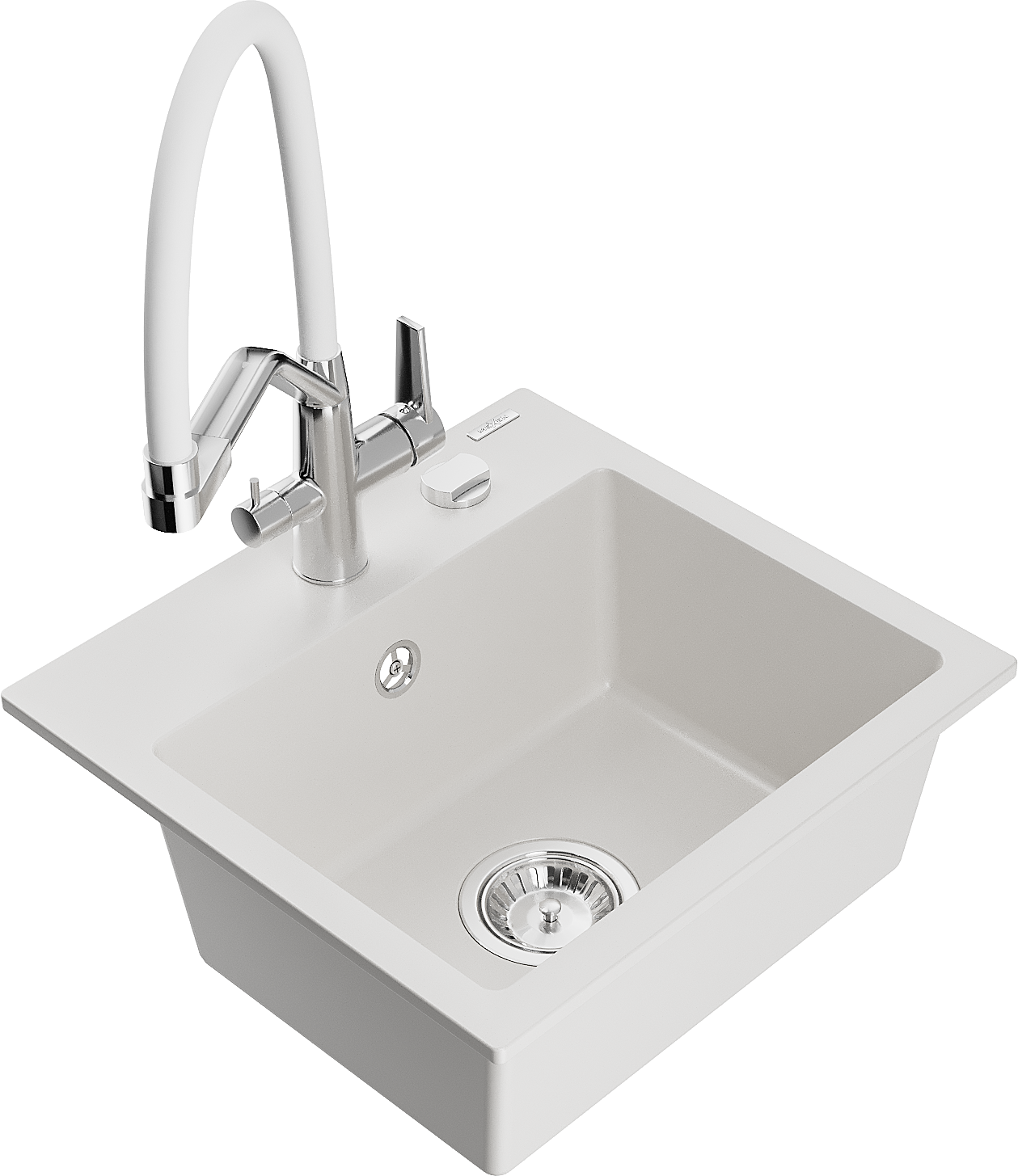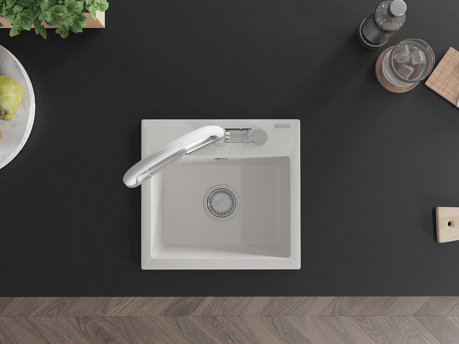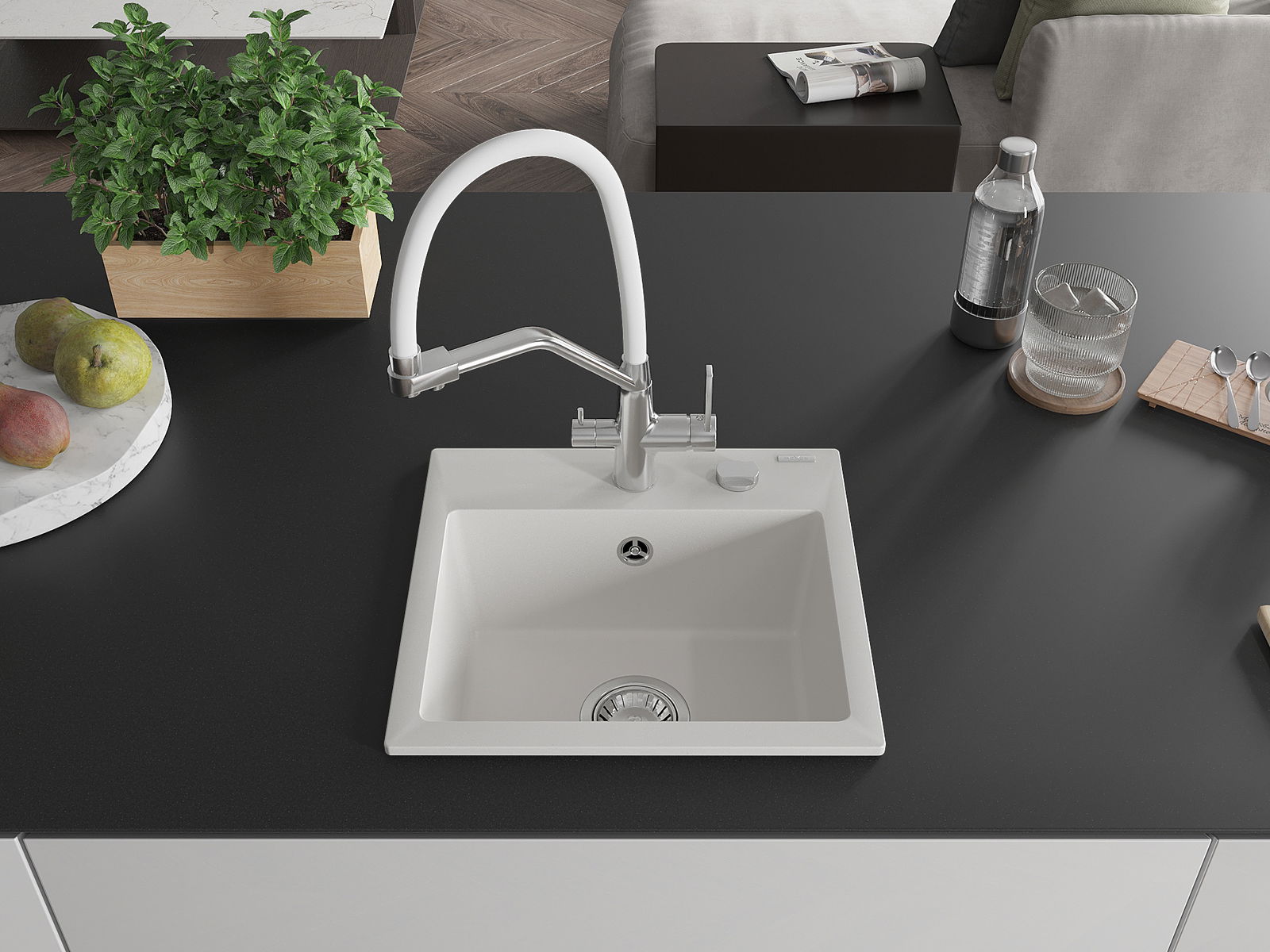 Mexen Milo Νεροχύτης γρανίτης 1-λοβός με μπαταρία κουζίνας Duo, λευκός