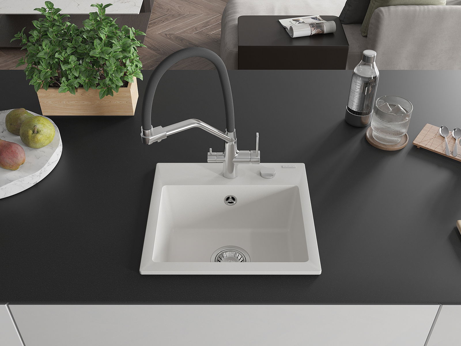 Mexen Milo νεροχύτης γρανίτης 1-θαλάμου με μπαταρία κουζίνας Duo, λευκός