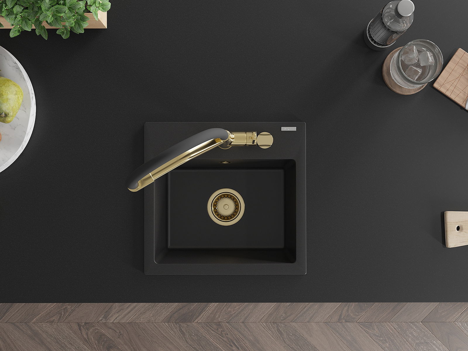 Mexen Milo νεροχύτης γρανίτης ενός θαλάμου με μπαταρία κουζίνας Duo, μαύρος