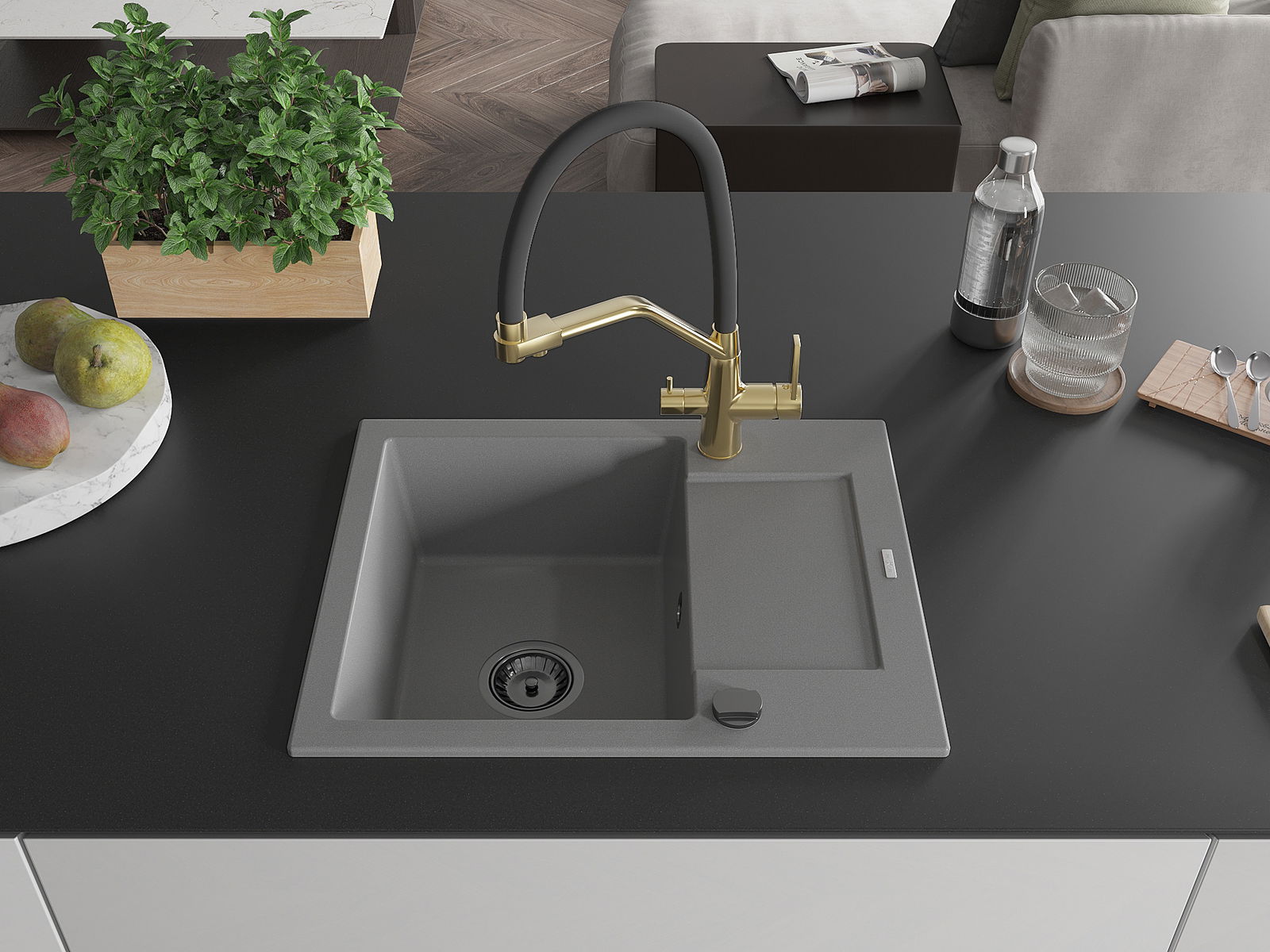 Mexen Enzo νεροχύτης γρανίτης 1-θαλάμου με στραγγιστήρα και μπαταρία