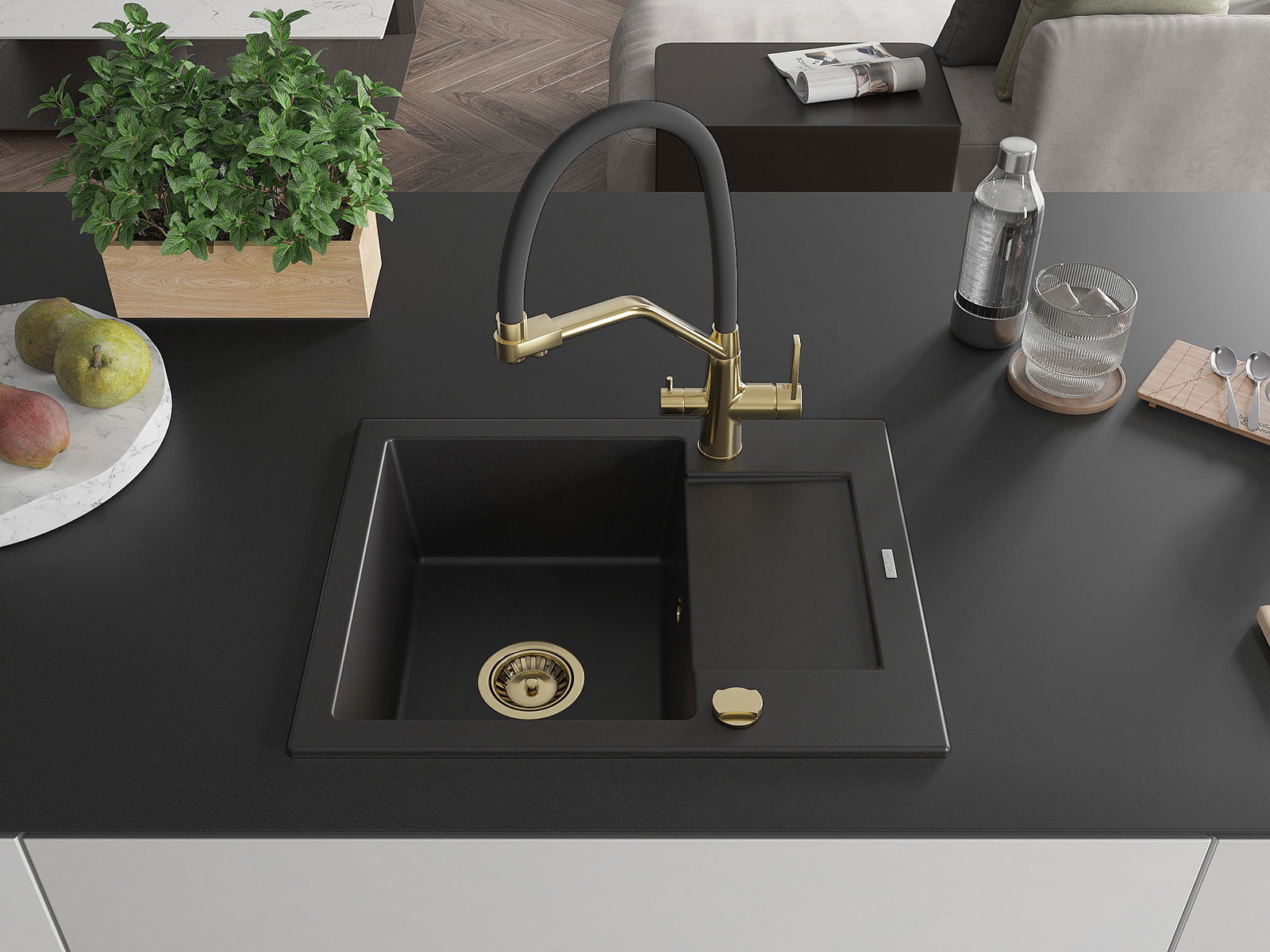 Ο νεροχύτης κατασκευάστηκε από υψηλής ποιότητας γρανίτη. Αποτελεί μια κομψή, και κυρίως πρακτική προσθήκη για κάθε κουζίνα, ανεξάρτητα από το στυλ της. Η υψηλή ποιότητα και η αντοχή του γρανίτη εξασφαλίζουν πολυετή χρήση.