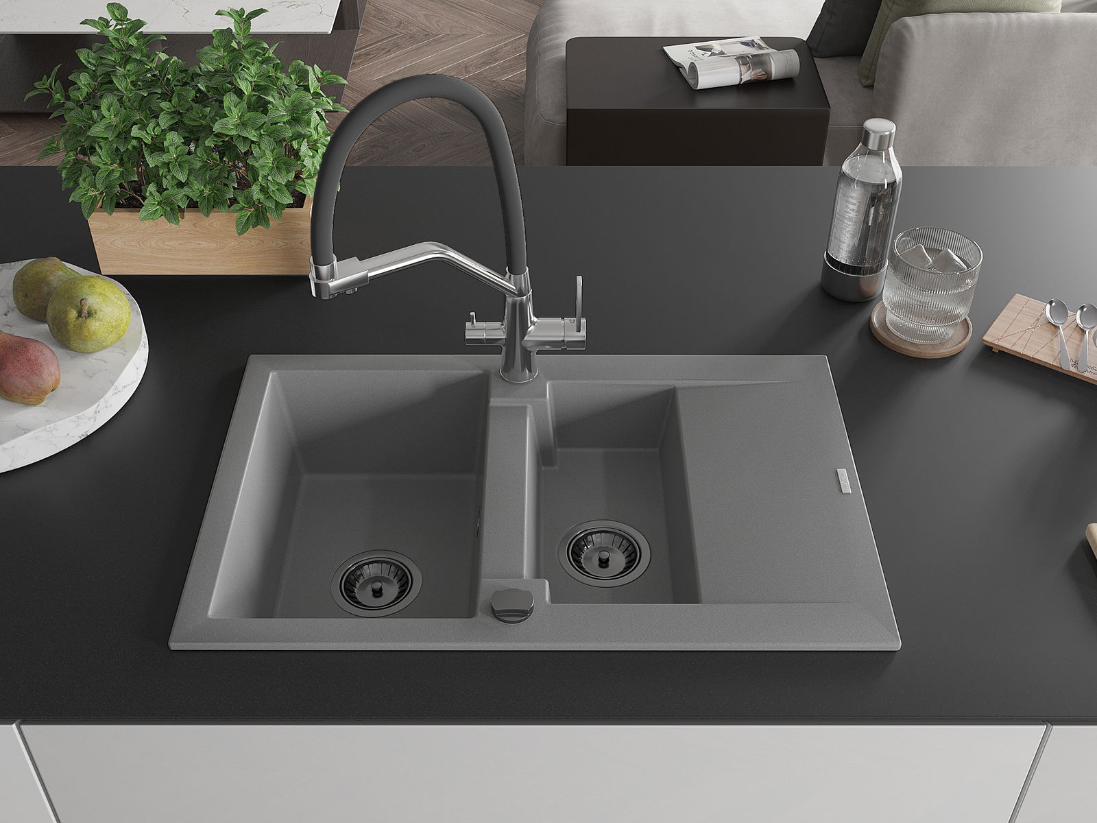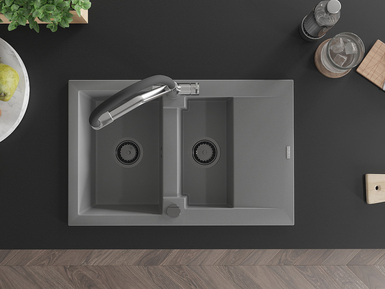 Ο νεροχύτης κατασκευάστηκε από υψηλής ποιότητας γρανίτη. Αποτελεί μια κομψή, και κυρίως πρακτική προσθήκη για κάθε κουζίνα, ανεξάρτητα από το στυλ της. Η υψηλή ποιότητα και η αντοχή του γρανίτη εξασφαλίζουν πολυετή χρήση.
