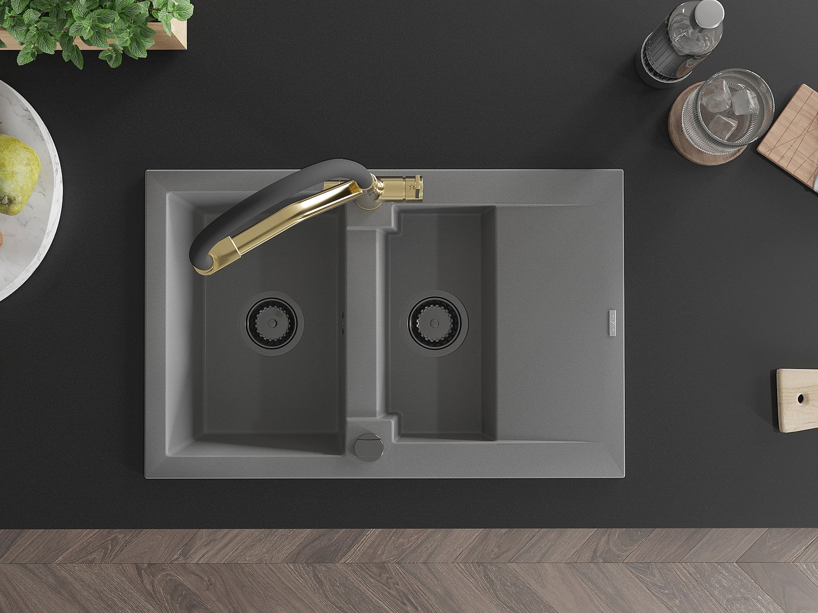Mexen Gaspar νεροχύτης γρανίτης 1,5-θάλαμος με στραγγιστήρι και μπαταρία