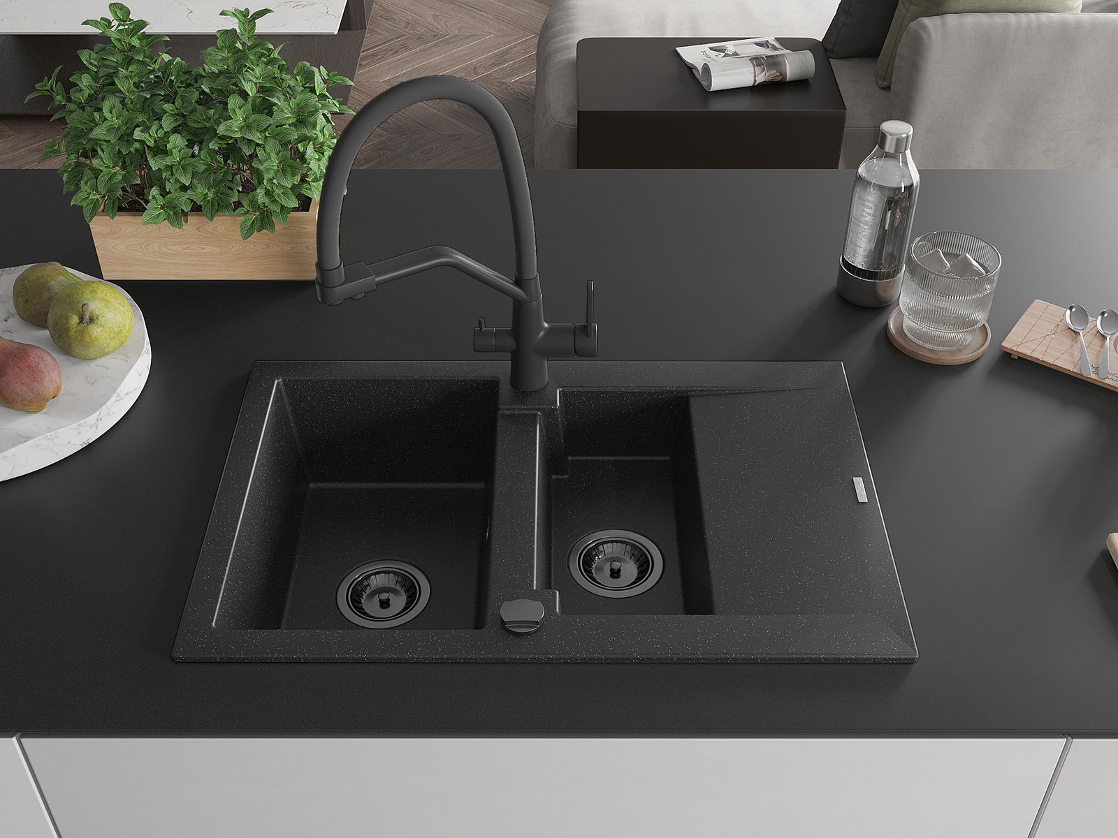 Mexen Gaspar νεροχύτης γρανίτης 1,5-θαλάμων με στραγγιστήρι και μπαταρία