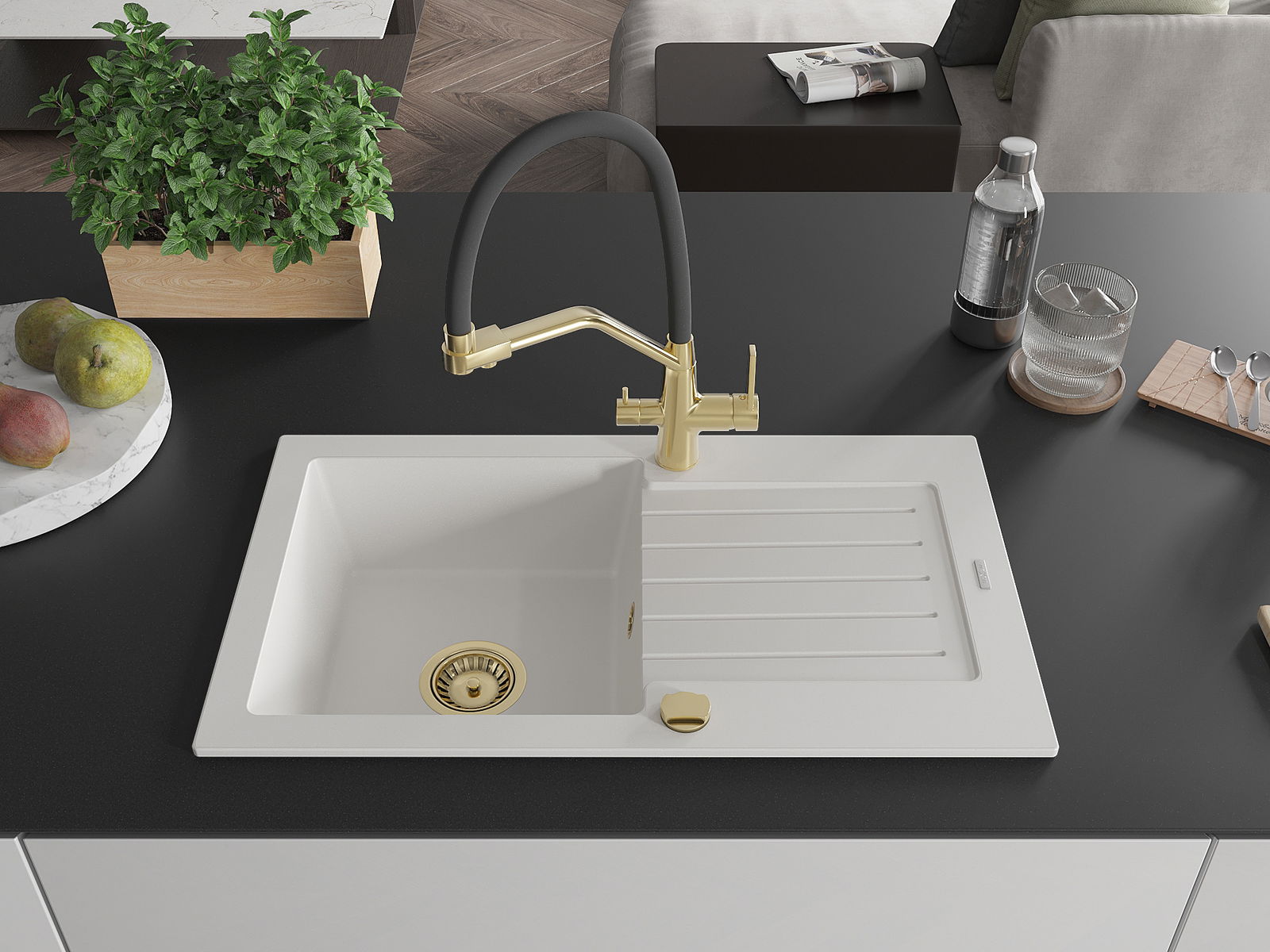 Η επιλογή ενός νεροχύτη με στραγγιστήρι είναι μια πρακτική λύση που επιτρέπει να τοποθετήσετε τα πλυμένα πιάτα ή τα λαχανικά και τα φρούτα. Το στραγγιστήρι διευκολύνει το καθημερινό μαγείρεμα και βοηθά στη διατήρηση της τάξης στην κουζίνα.