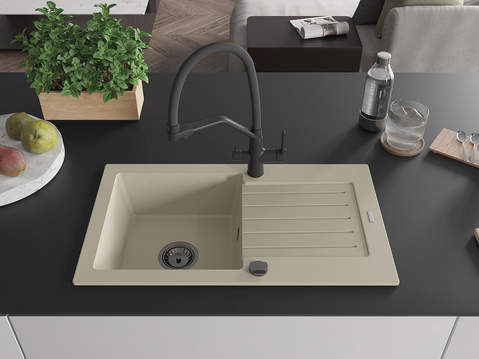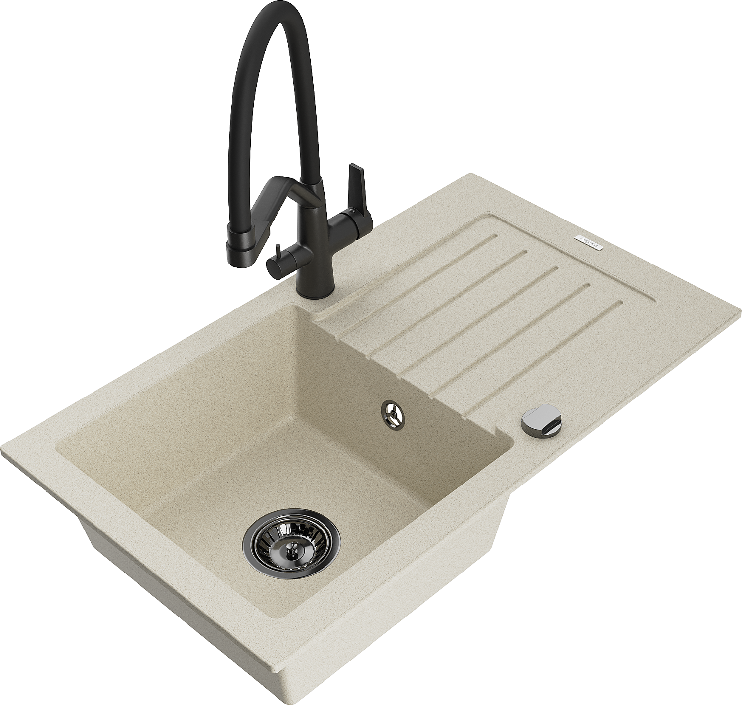 Mexen Pablo νεροχύτης γρανίτης 1-θαλάμου με στραγγιστήρα και μπαταρία
