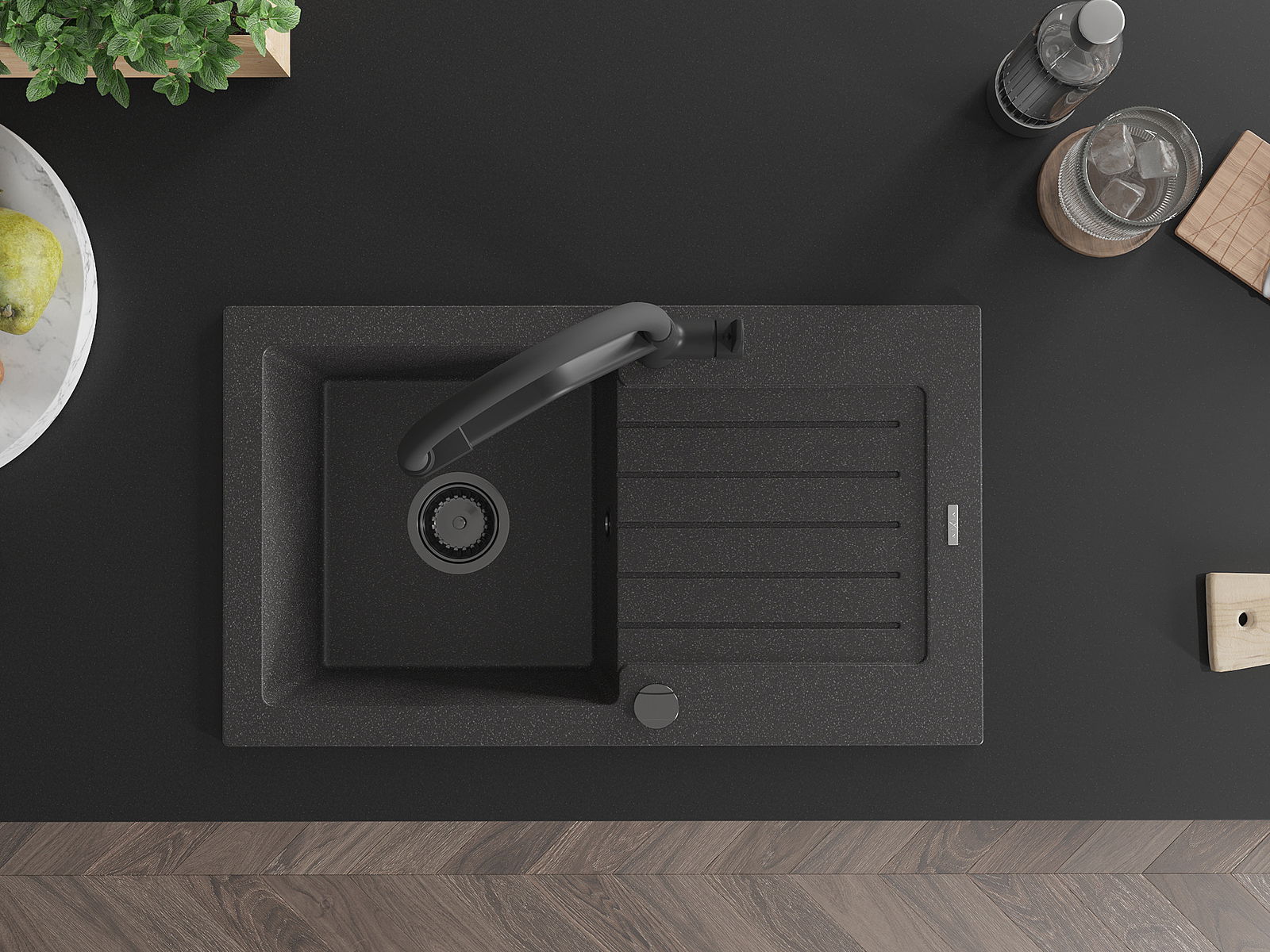 Mexen Pablo νεροχύτης γρανίτης 1-θαλάμου με αποστράγγιση και μπαταρία