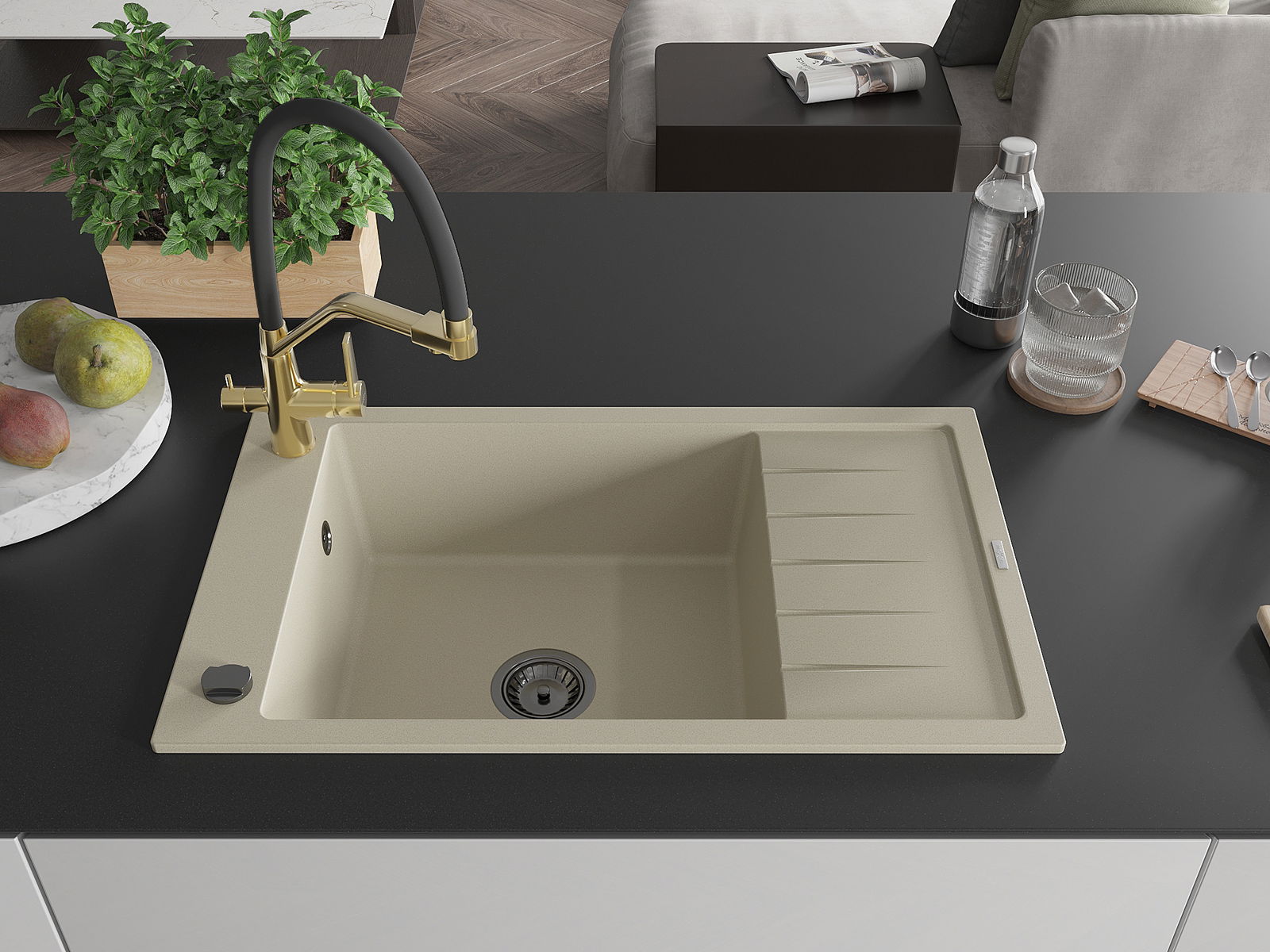 Ο νεροχύτης κατασκευάστηκε από υψηλής ποιότητας γρανίτη. Αποτελεί μια κομψή, και κυρίως πρακτική προσθήκη για κάθε κουζίνα, ανεξάρτητα από το στυλ της. Η υψηλή ποιότητα και η αντοχή του γρανίτη εξασφαλίζουν πολυετή χρήση.